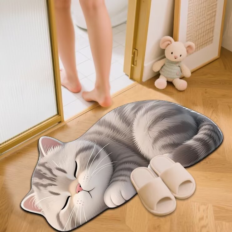 만화 특별한 모양의 애완 고양이 부드러운 규조토 진흙 욕실 바닥 매트 욕실 문 흡수성 속건성 발 매트스토어 가기