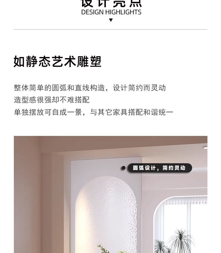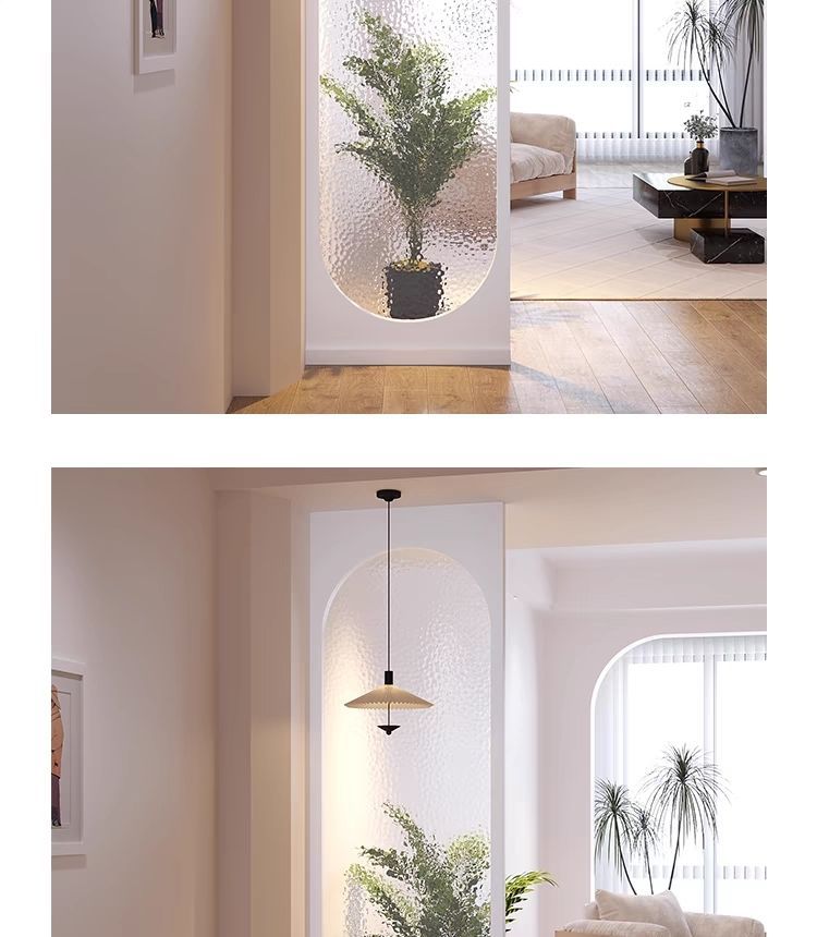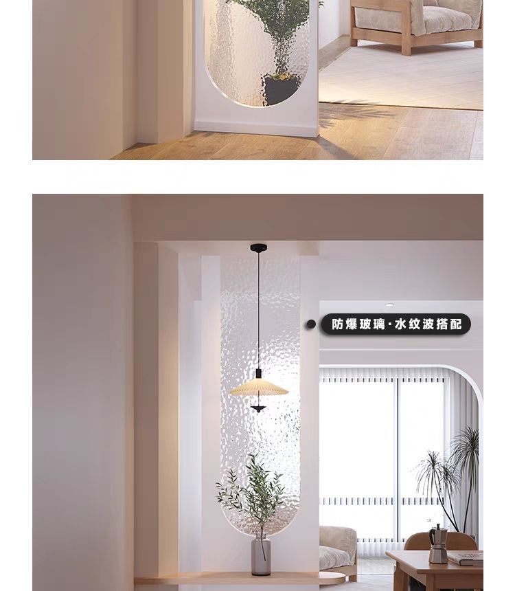북유럽 크림 스타일 거실 입구 청보 유리 칸막이 벽 세면대 차단 아치형 원목 스크린스토어 가기