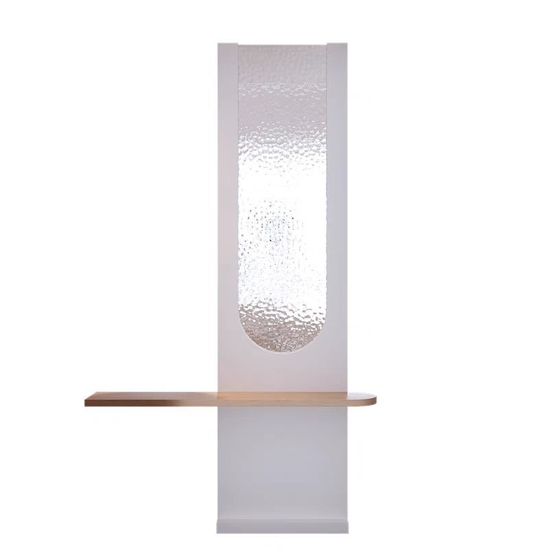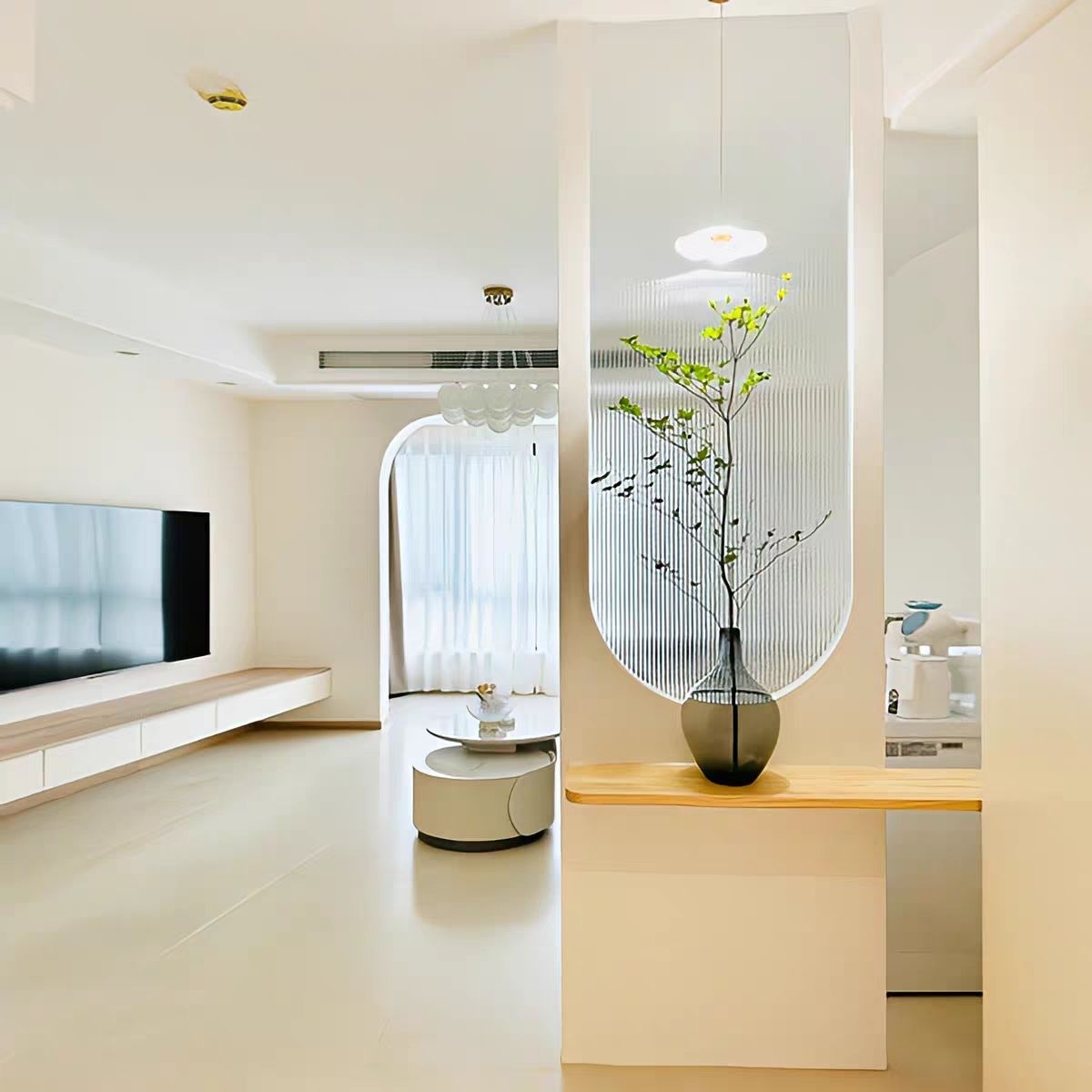 북유럽 크림 스타일 거실 입구 청보 유리 칸막이 벽 세면대 차단 아치형 원목 스크린
