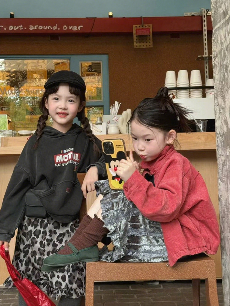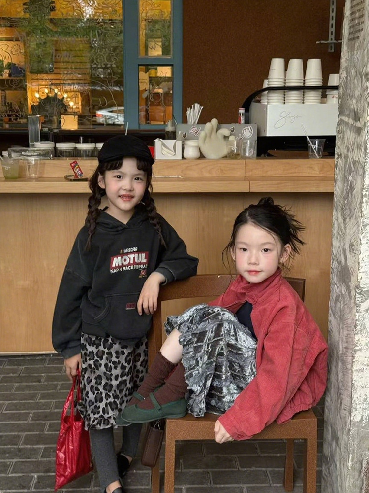 여자 가을 새로운 유행 인쇄 후드 티셔츠 2025 레오파드 프린트 스커트 솔리드 컬러 레깅스 유행 투피스 세트스토어 가기
