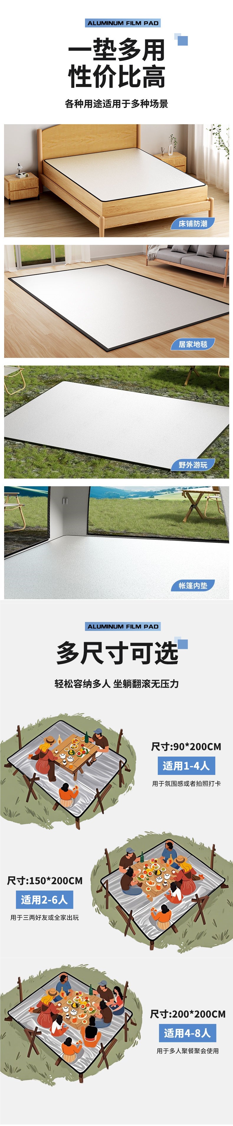 361 ° 야외 캠핑용 방습 매트, 두꺼운 텐트용 수면 매트, 가정용 바닥재, 접이식 피크닉 방습 매트