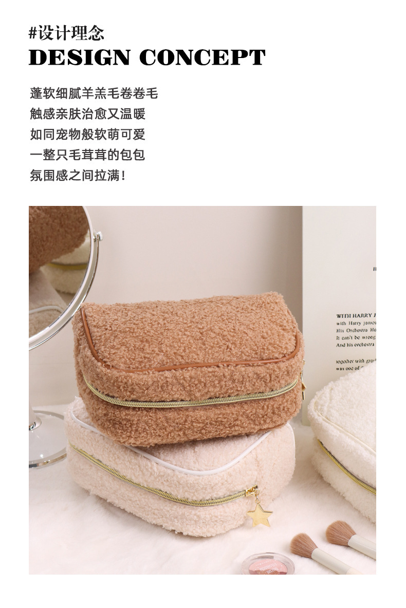 새로운 플러시 간단한 화장품 가방, 소형, 고급 휴대용 가정용 세면 용품 가방, 대용량 여행용 수납 가방 도매