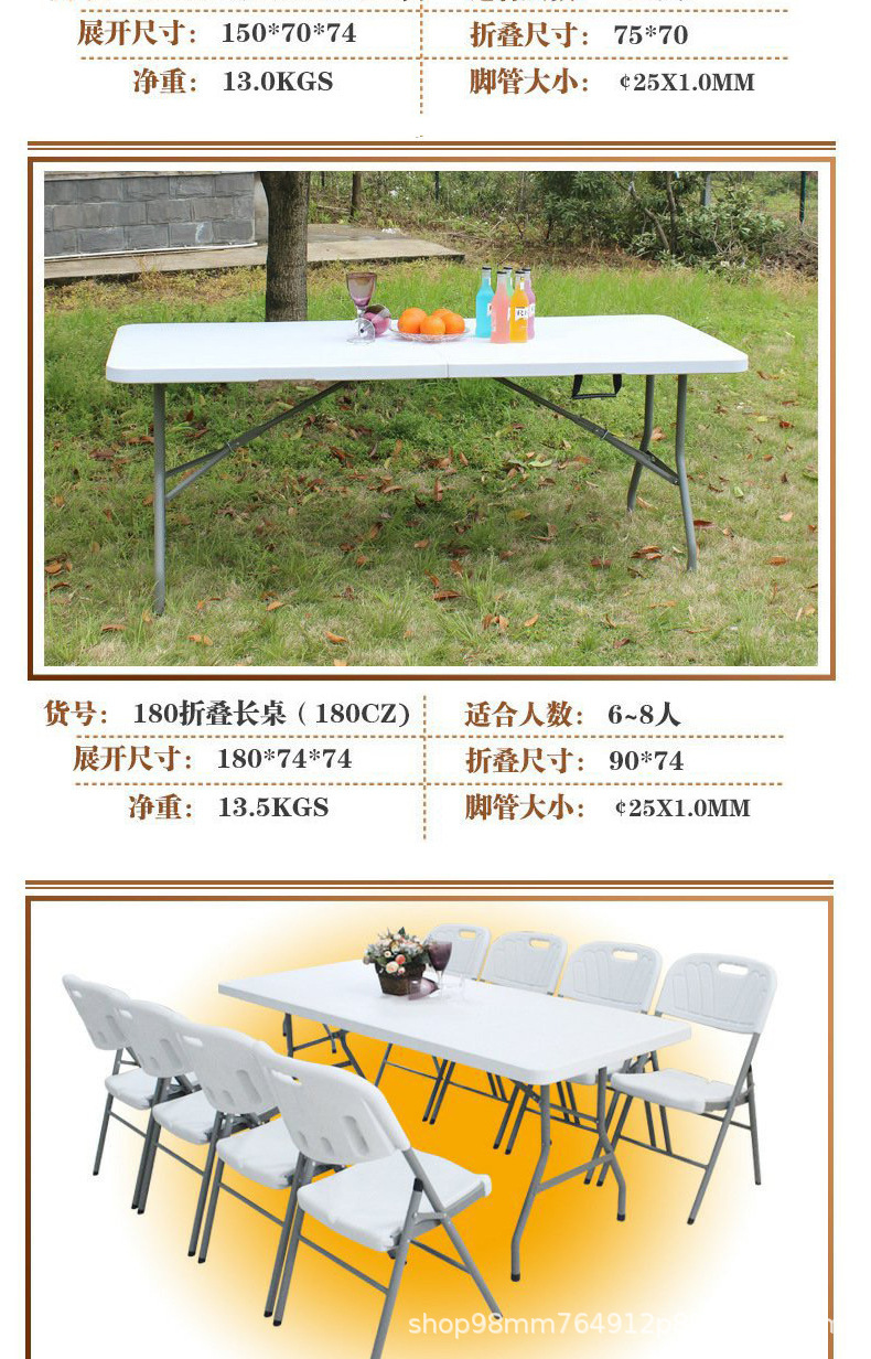 야외 캠핑 식탁 플라스틱 접이식 테이블 두꺼운 피크닉 스톨 사각형 테이블 휴대용 다기능 편의점 테이블