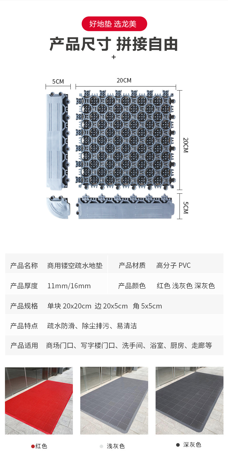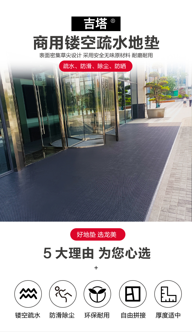 사무실 출입문 매트, 먼지 제거 및 진흙 긁기 도어 매트, 야외 호텔 출입구 미끄럼 방지 야외 중공 접합 바닥 매트