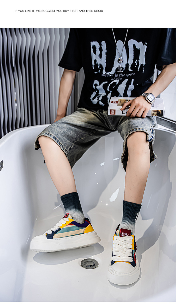 2025 사계절 신작 남성 신발 캐주얼 운동화 트렌디 학생 다용도 두꺼운 밑창 높이 증가 컬러 매칭 패션 운동화스토어 가기