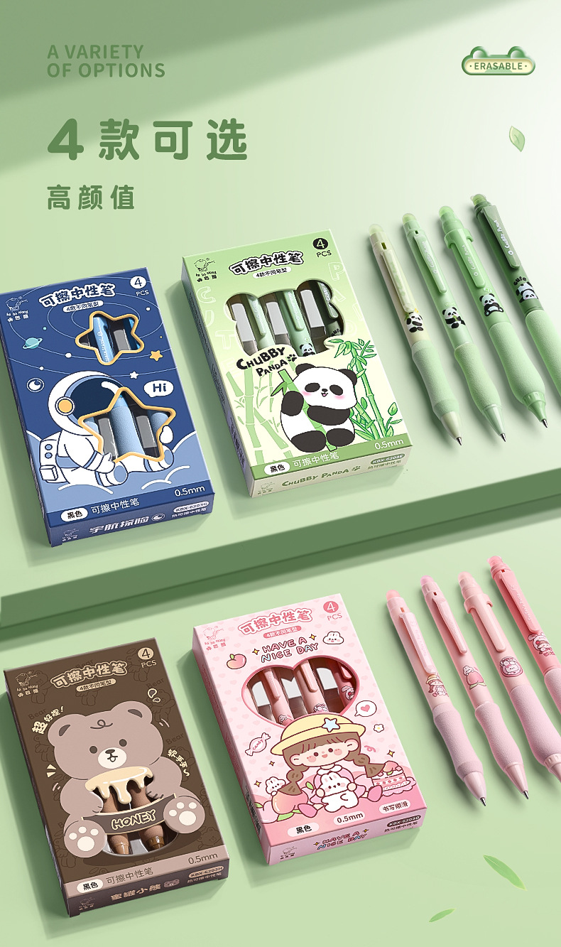 초등학생을 위한 멋진 프레스 지울 수 있는 펜 만화 3학년 열 지우개 블랙 크리스탈 블루 젤 펜 세트스토어 가기