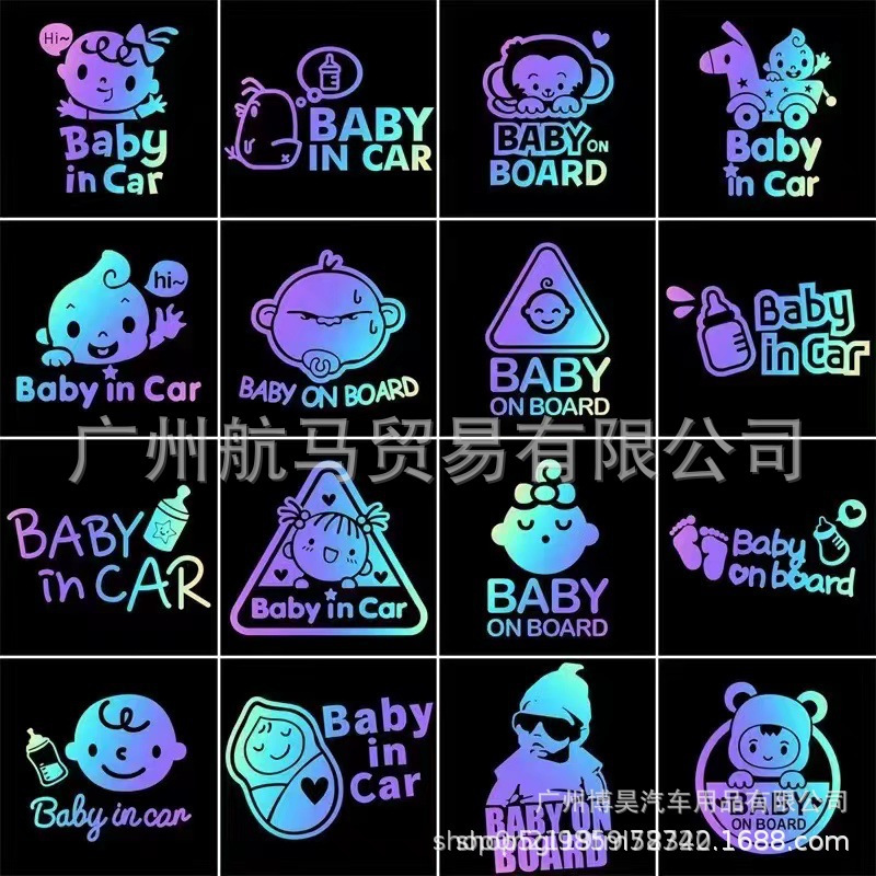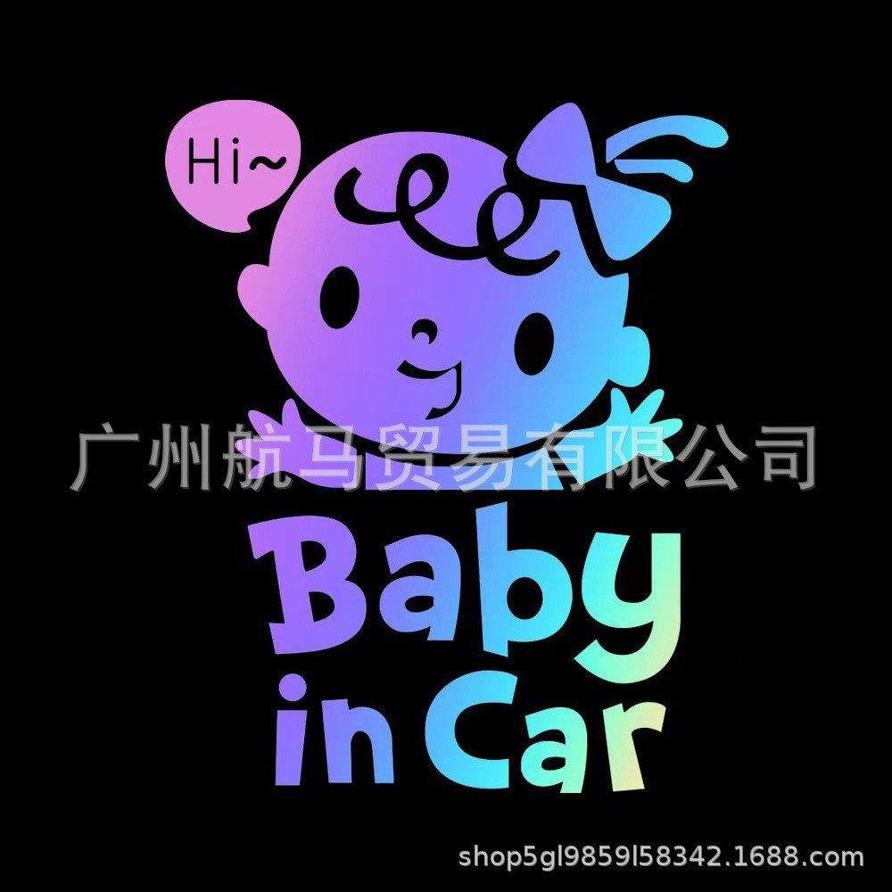 차 안에 아기가 있습니다. 차 안에 아기가 있습니다. 반사/다채로운 레이저 스티커스토어 가기