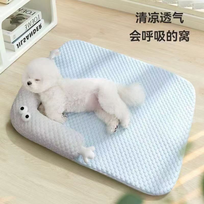 사계절용 개집, 탈부착 및 세탁 가능한 개 침대, 얼음 느낌의 개집, 중소형 개 수면 매트, 고양이 개집, 수면용 애완견 및 고양이 매트스토어 가기
