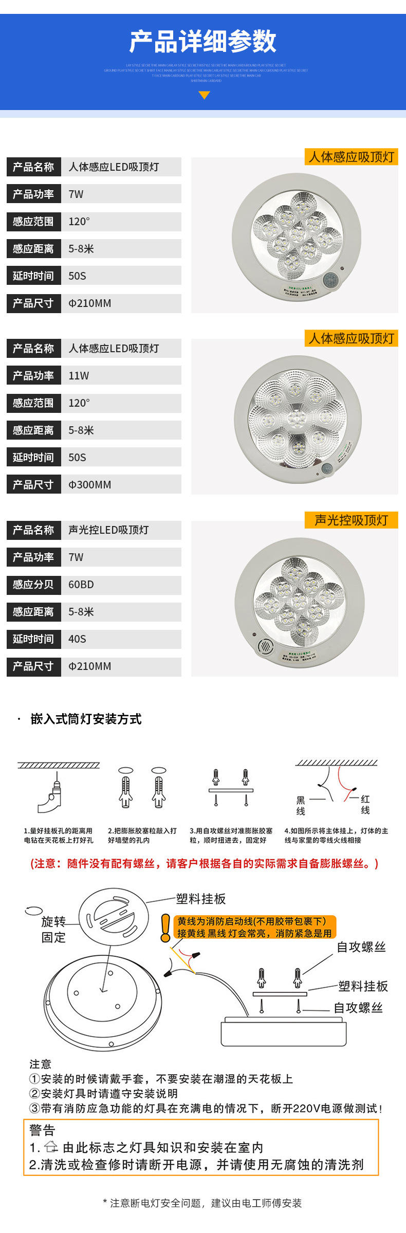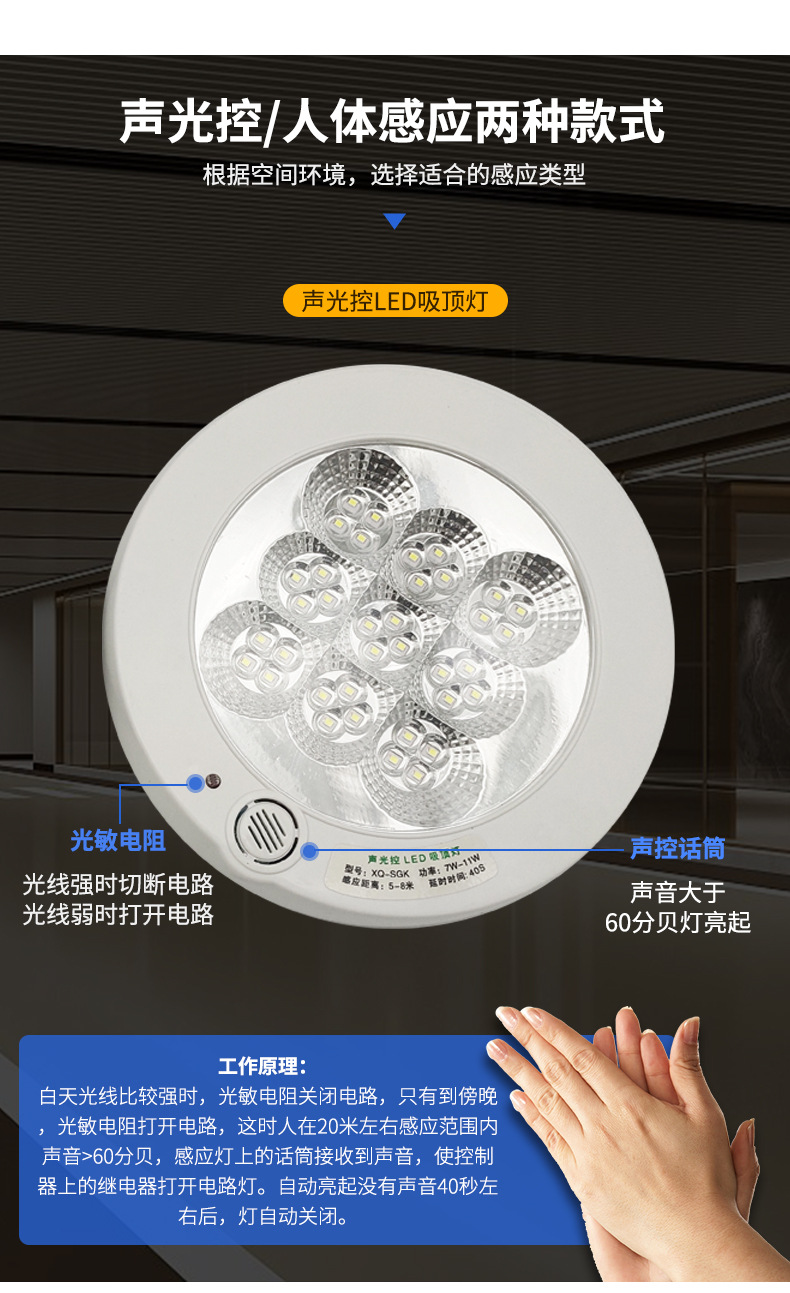 LED 센서등, 복도 천장등, 소리 및 조명 제어, 계단 통로, 차고, 지능형 인체 감지 센서