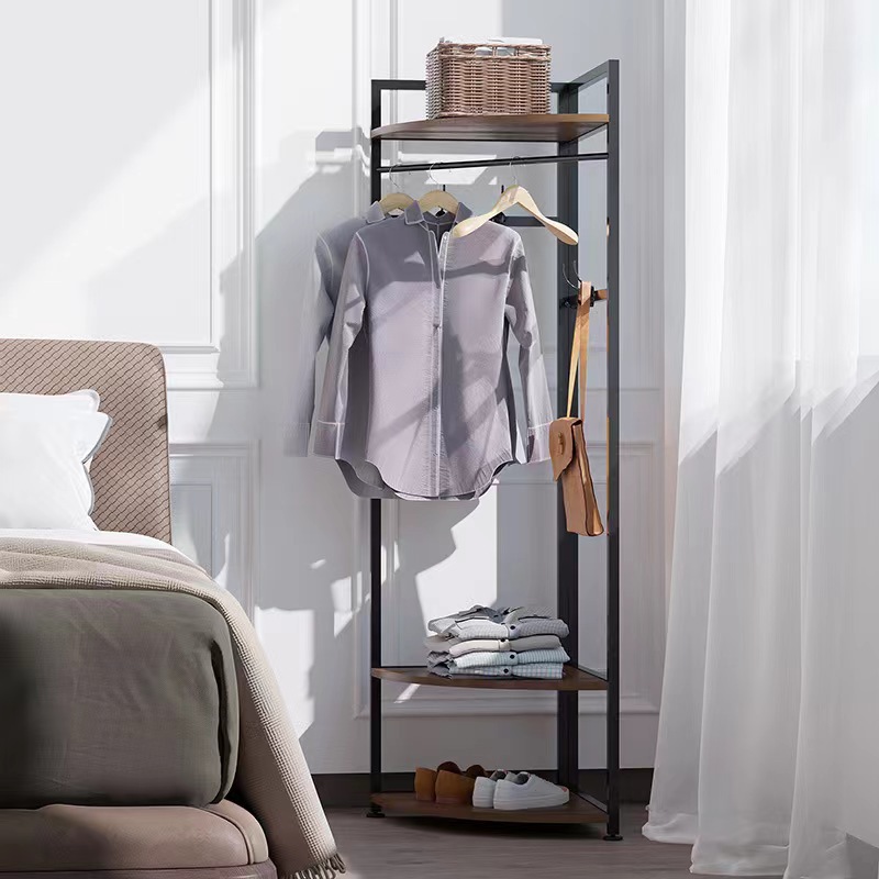 공장 직접 판매 홈 거실 코너 옷 걸이 바닥 스탠딩 의류 보관 선반 가방 신발 보관 선반 유행