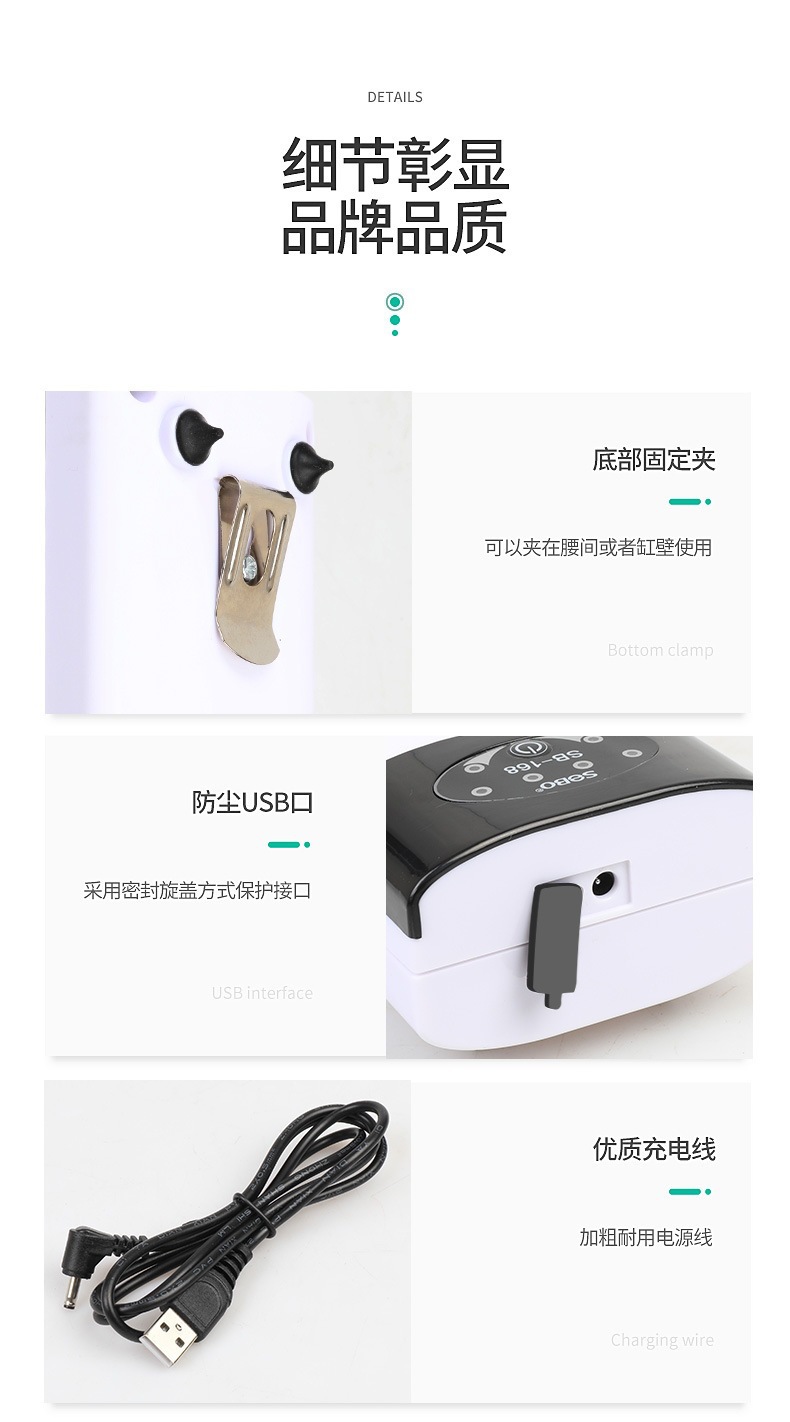 Songbao 충전식 산소 펌프 산소 펌프 낚시 이중 목적 산소 발생기 야외 소형 USB 리튬 배터리 산소 공급