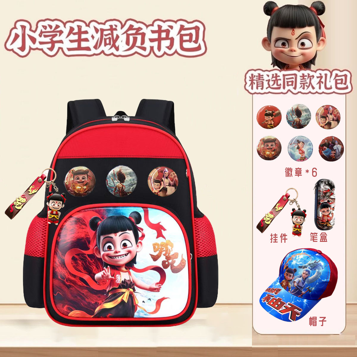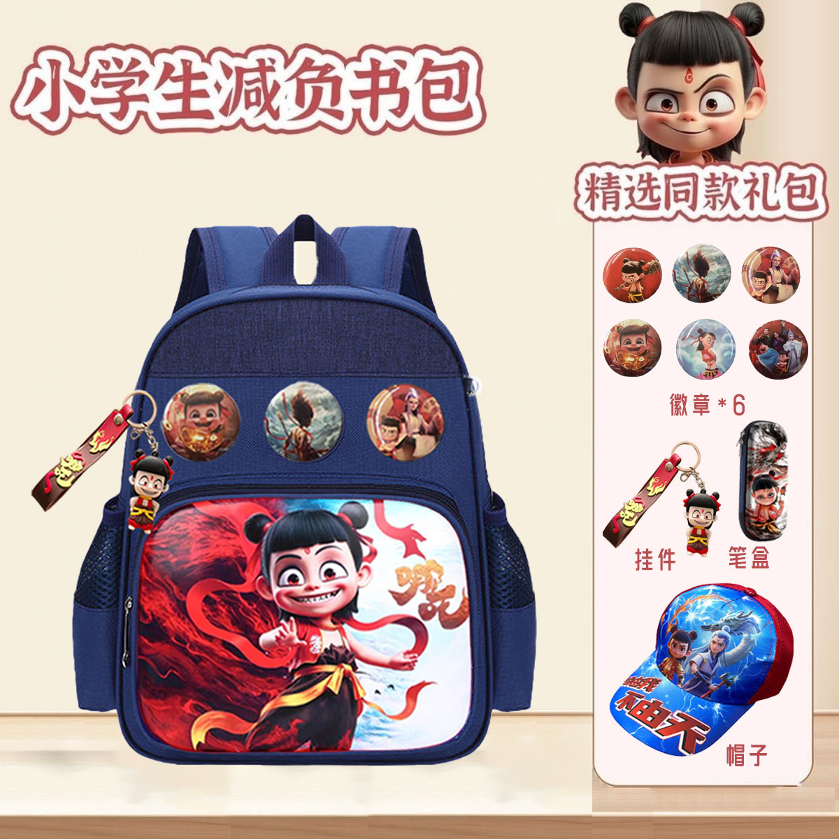 nezha 초등학교 가방 1-3-5 학년 만화 귀여운 부담 감소 배낭 경량 방수 어린이 배낭 남자스토어 가기