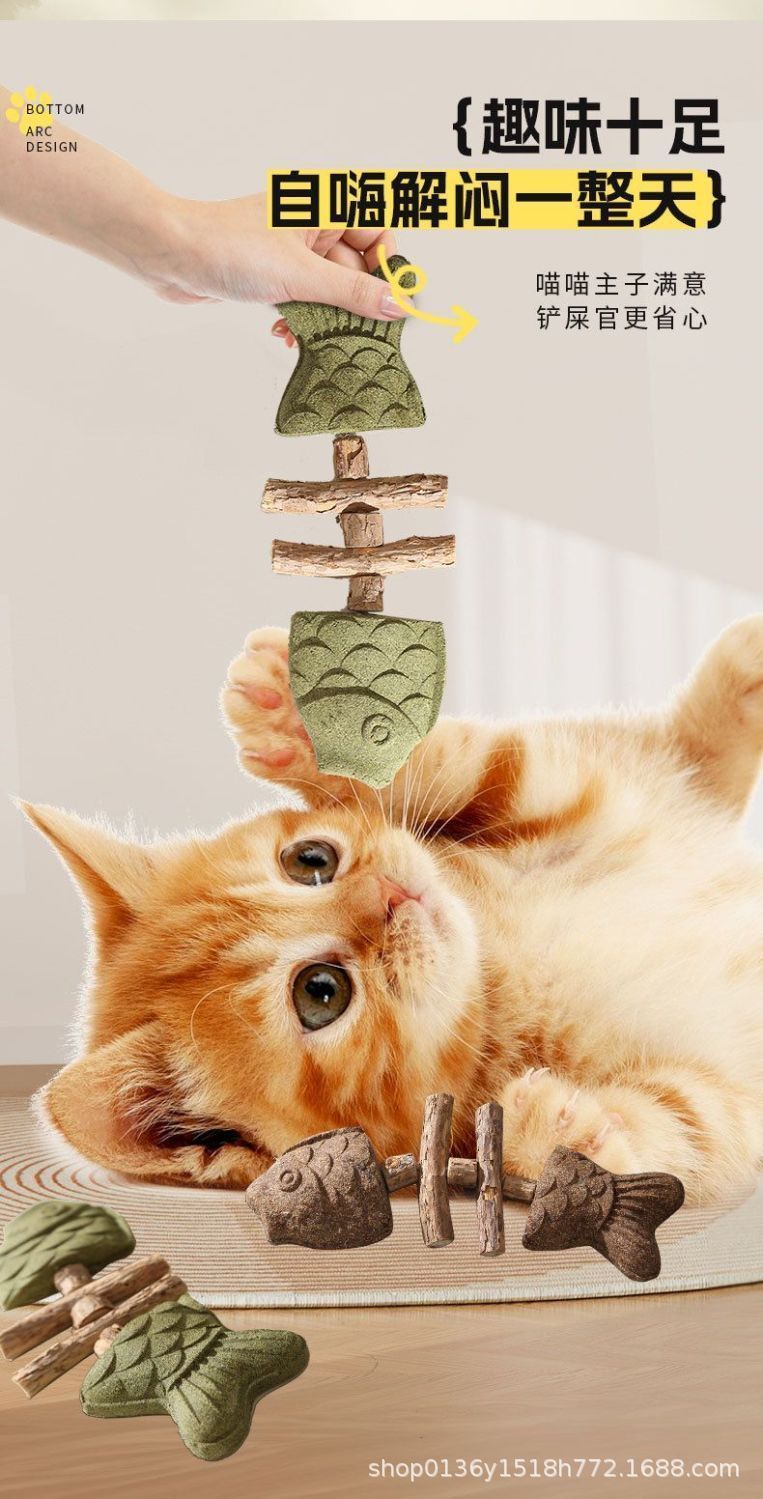 고양이 장난감 물고기 뼈 나무 고양이 민트 치아 스틱 시뮬레이션 물고기 치아 스틱 물림 방지 자체 즐거움과 지루함 해소 고양이 스틱스토어 가기