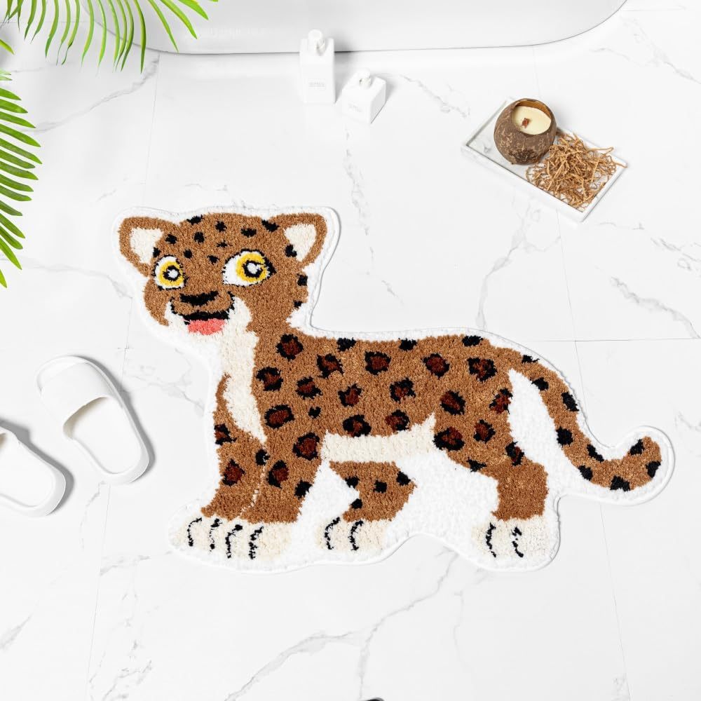 국경을 넘나드는 재미있는 표범 모양의 모조 캐시미어 바닥 매트, 입구 문, 얼룩 방지 및 내마모성 바닥 매트, 입구 방진 및 관리 용이스토어 가기