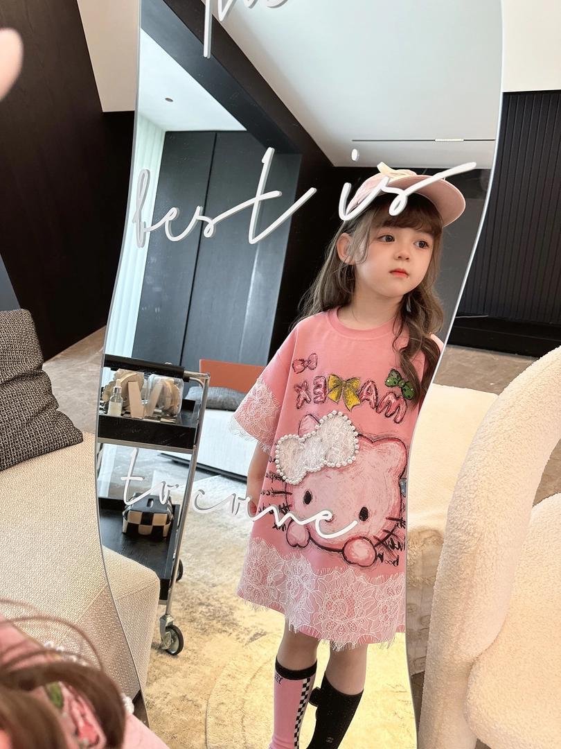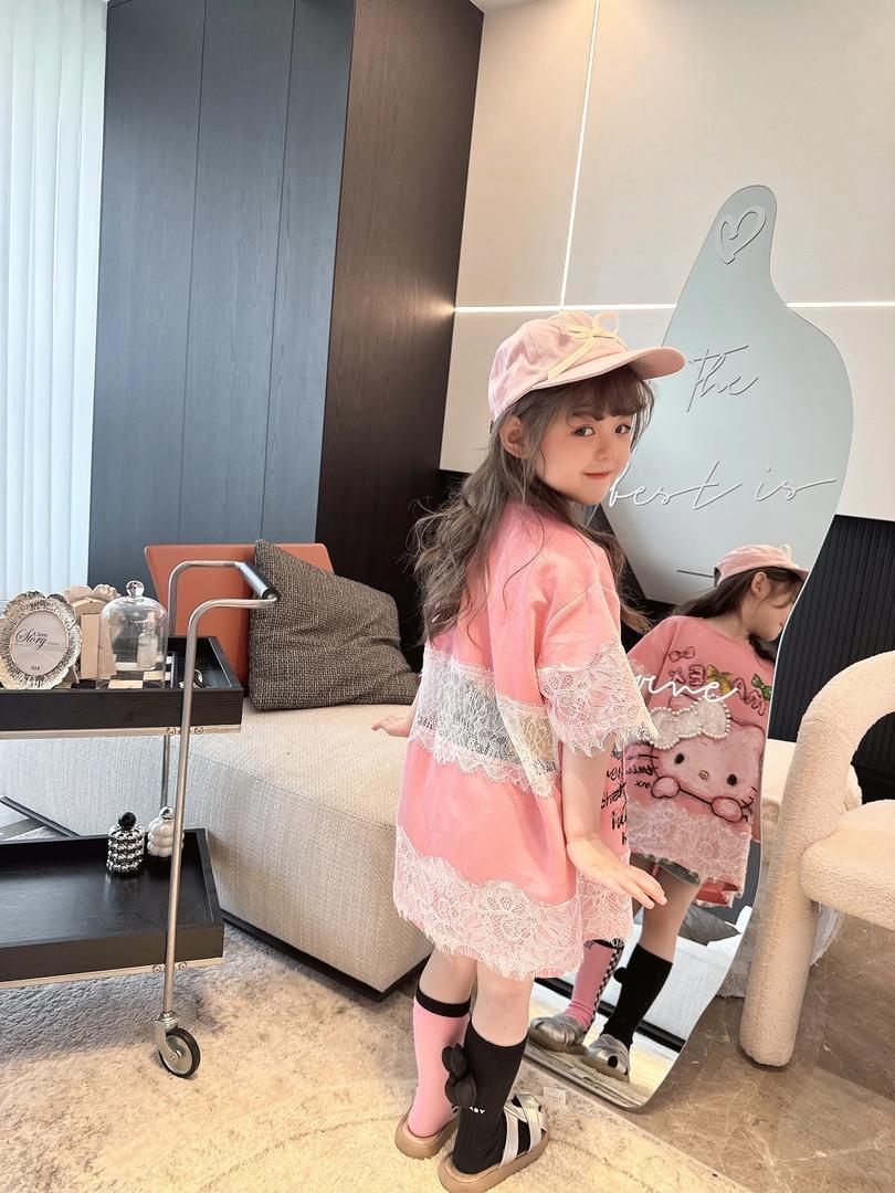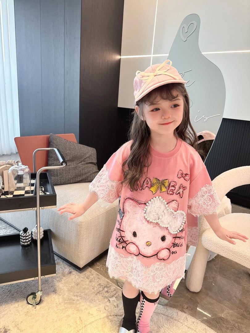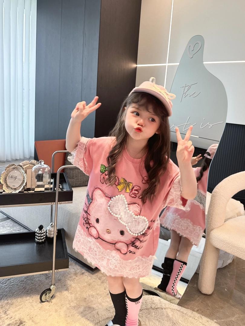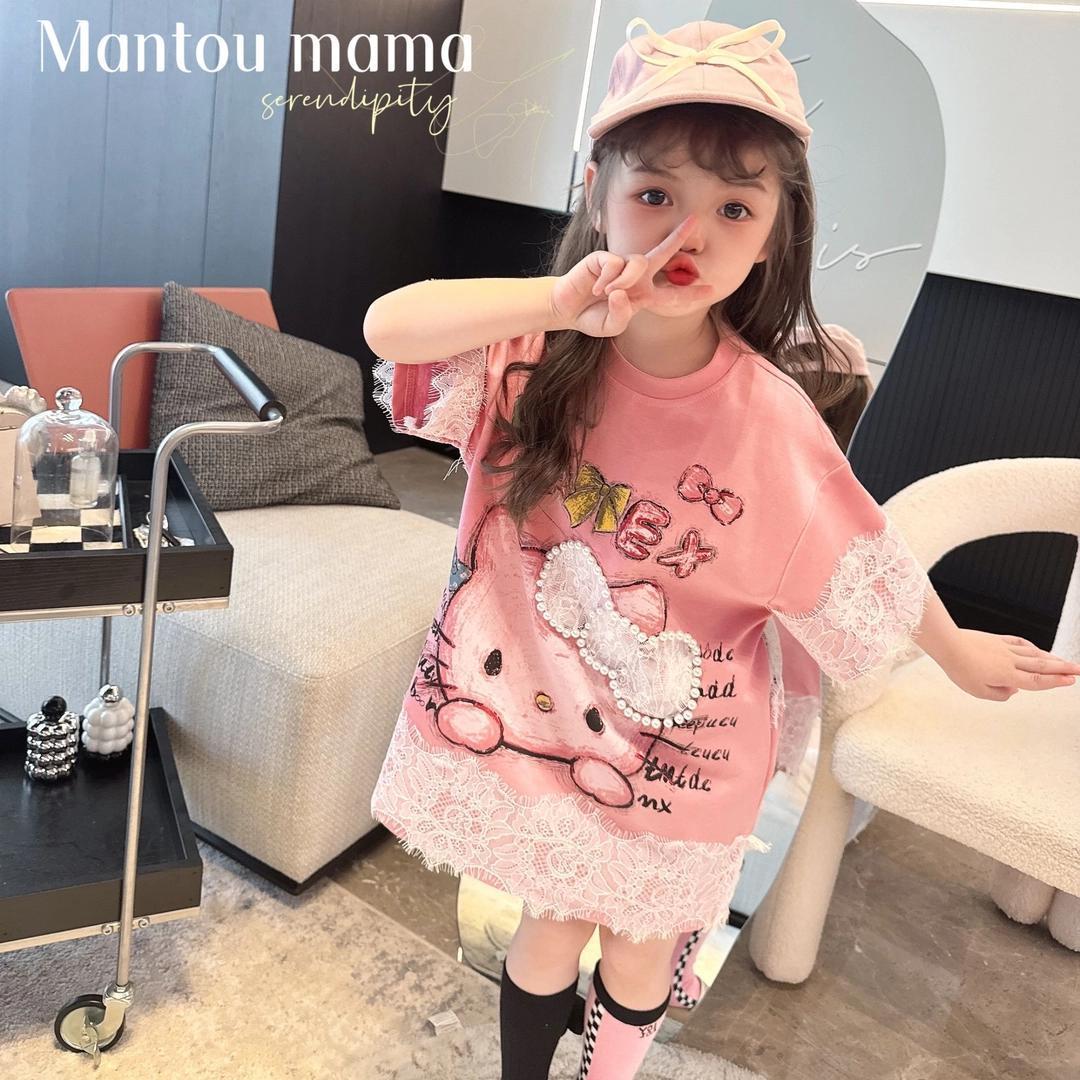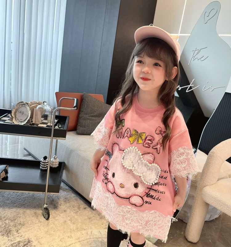 [신작] 레이스 KT 만화 티셔츠 한국 반팔 소녀 여름 귀여운 드레스 캐주얼 탑