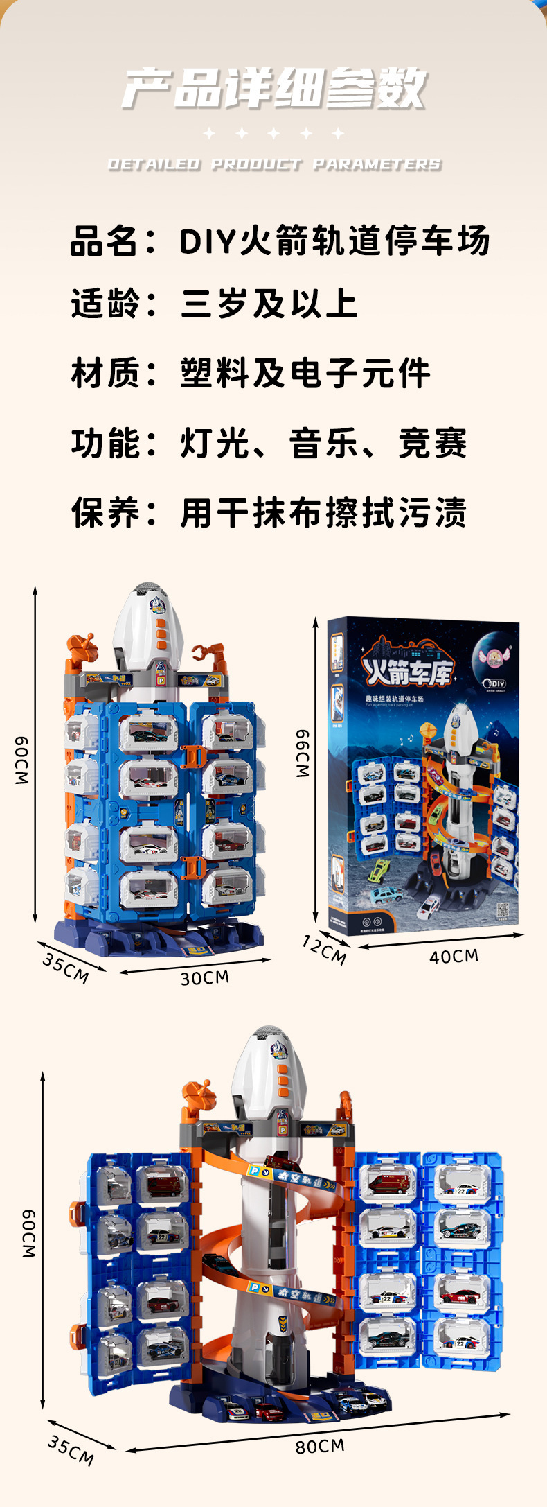 아마존 로켓 주차장 어린이 교육 장난감 소년 생일 선물 사운드 라이트 전기 엘리베이터 슬라이드 도매