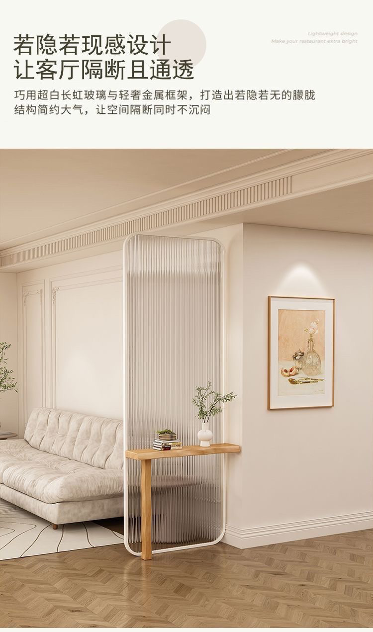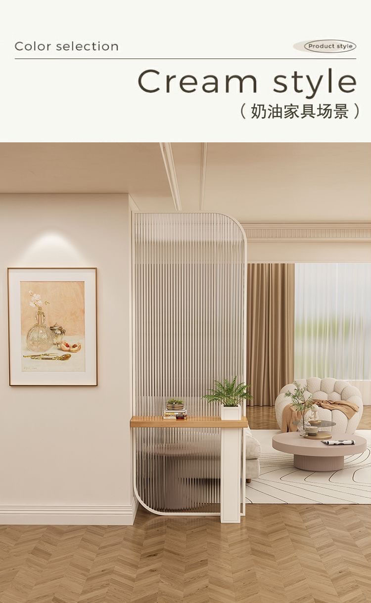 크림 스타일 2024 새로운 Changhong 유리 스크린 파티션 거실 현관 출입구를 차단하는 현대적인 간단한 욕실스토어 가기