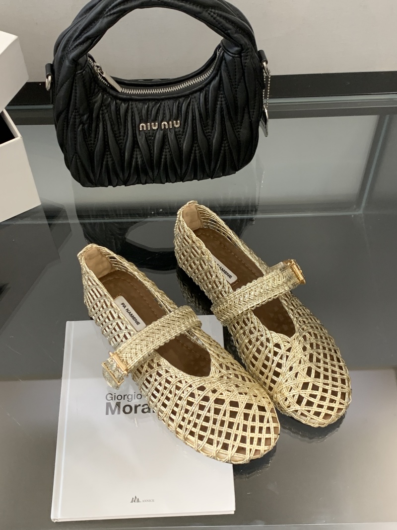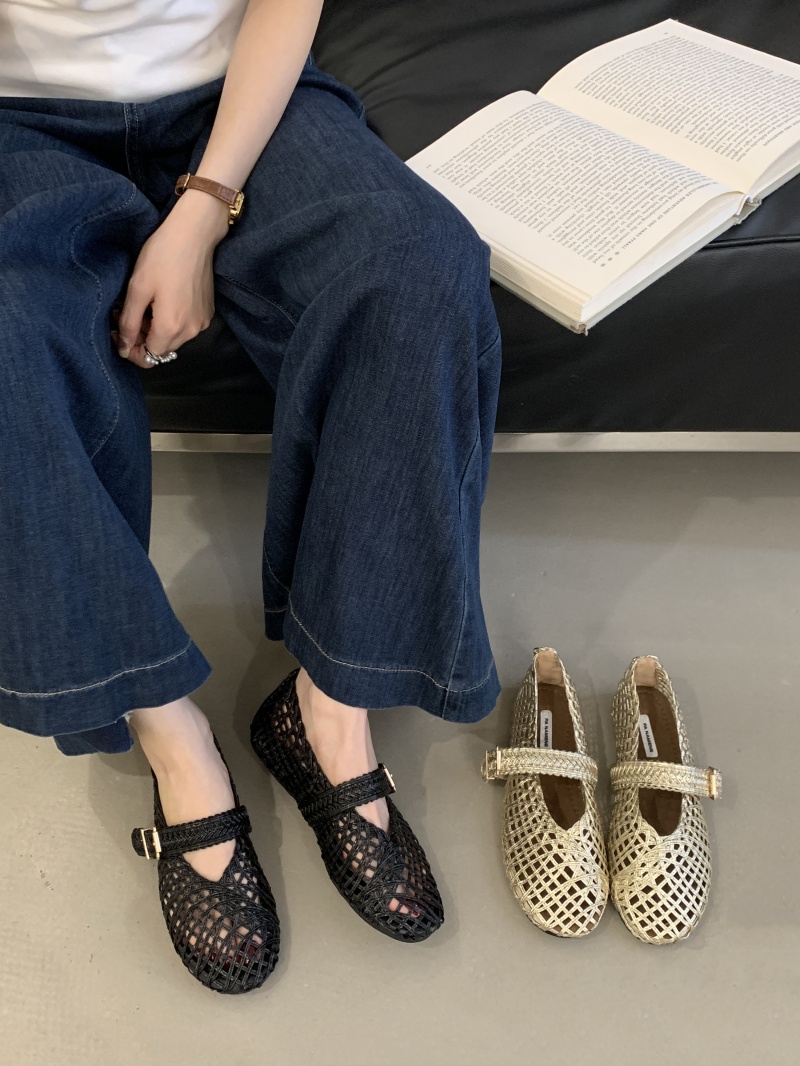 여성용 이브닝 바람 플랫 바닥 복고풍 짠 보헤미안 신발 2025 여름 휴가 스커트 할머니 신발스토어 가기