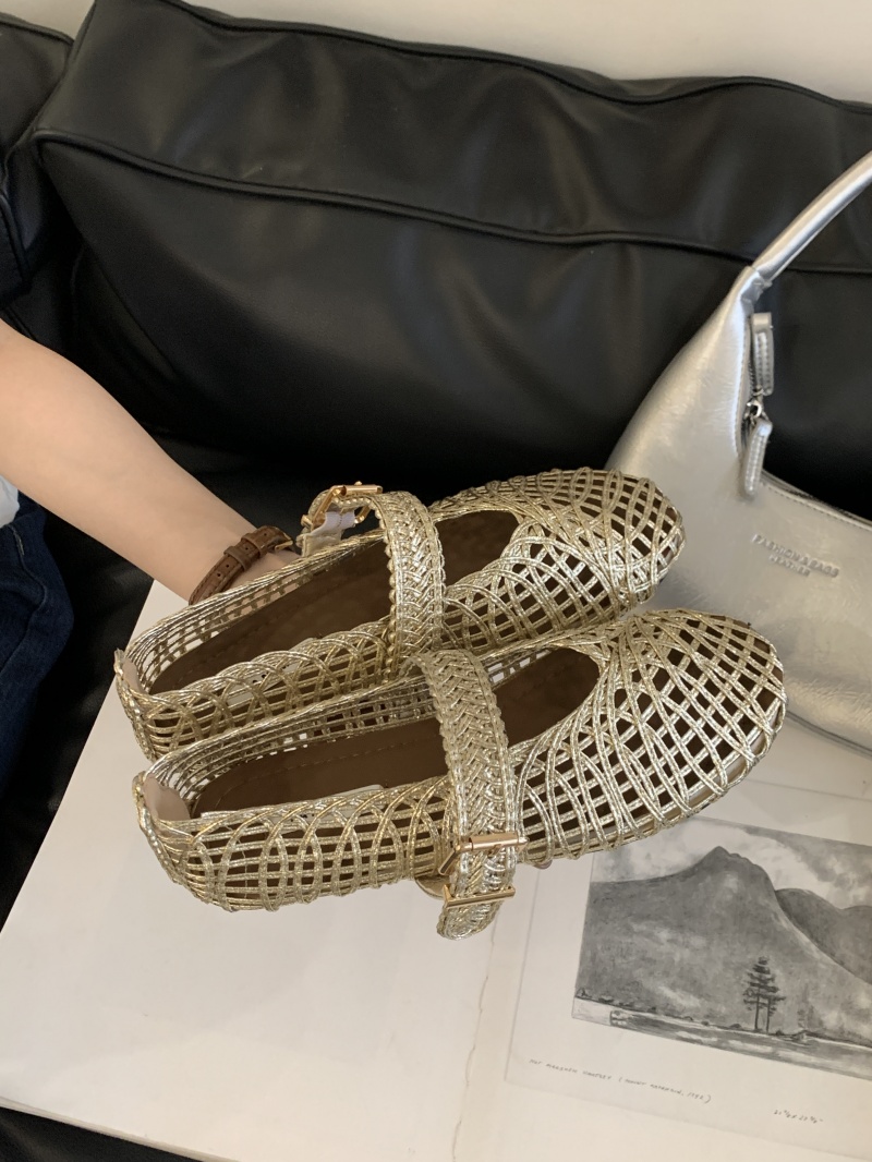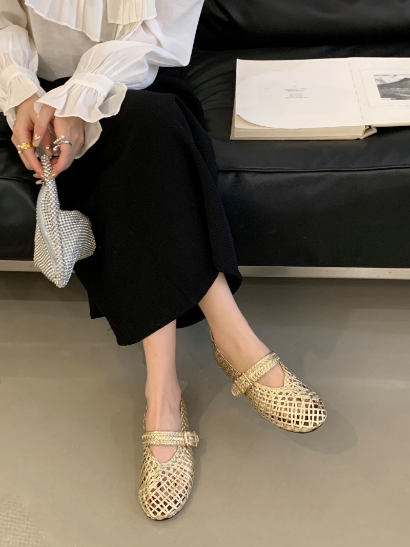 여성용 이브닝 바람 플랫 바닥 복고풍 짠 보헤미안 신발 2025 여름 휴가 스커트 할머니 신발
