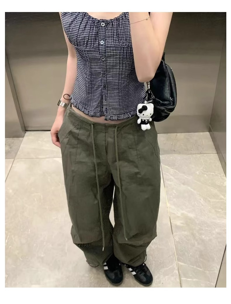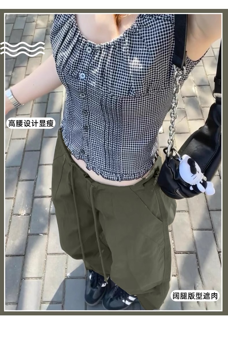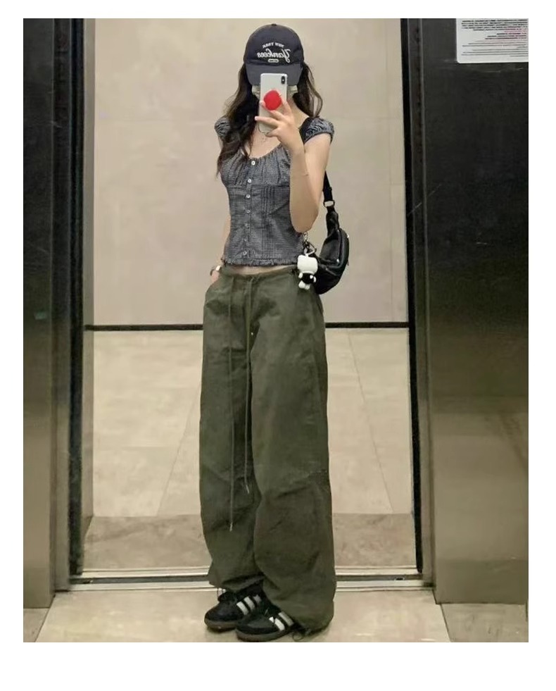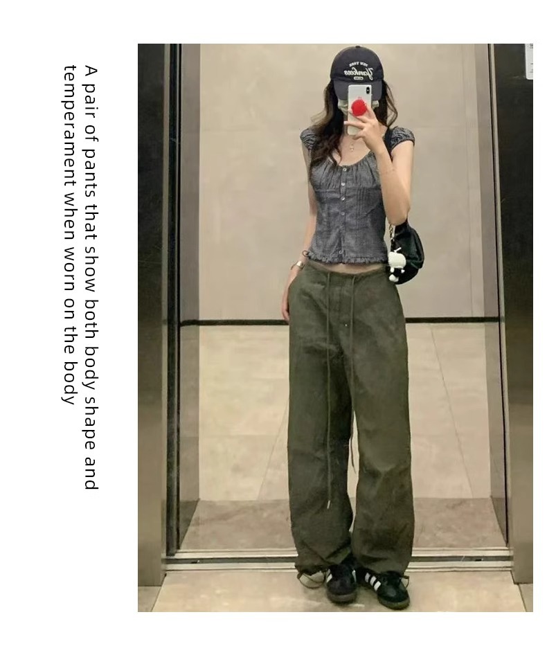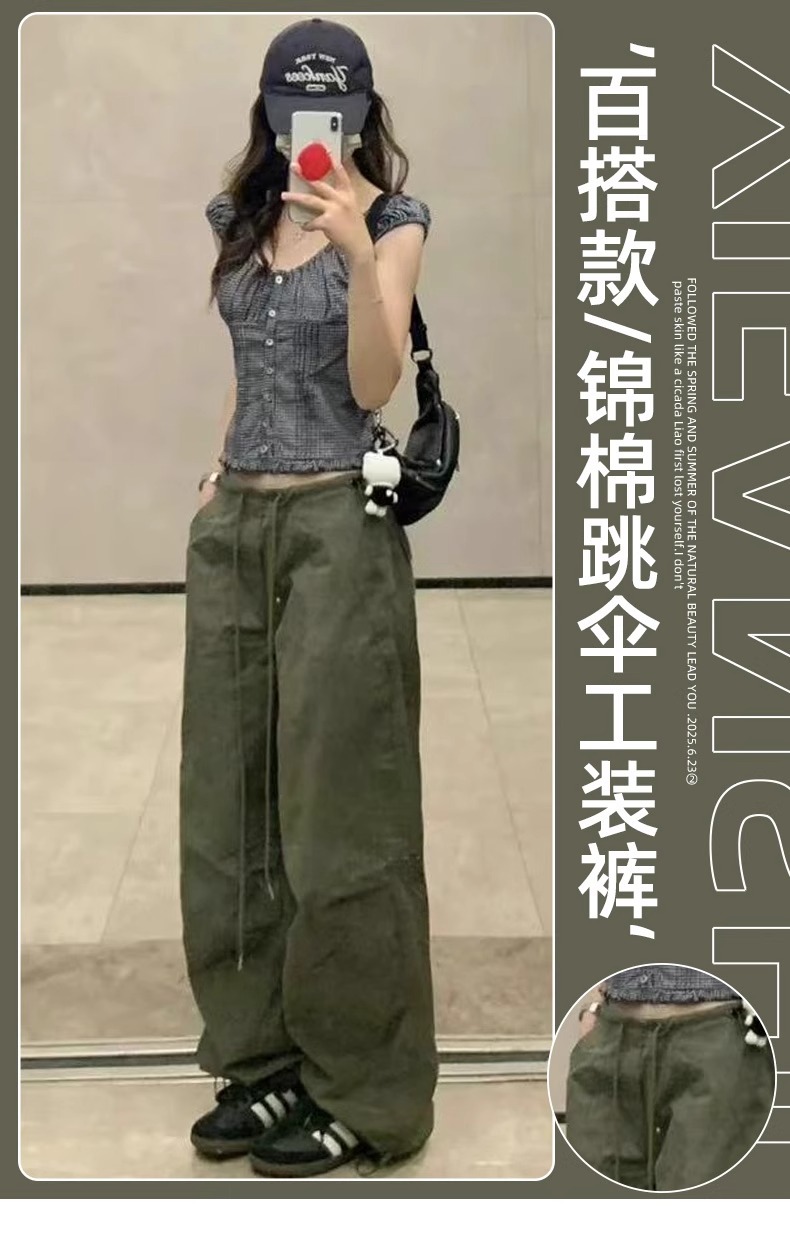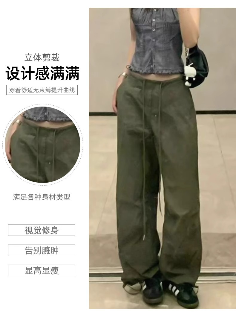 여성을위한 육군 녹색 속건성 작업복 여름 2025 새로운 스트레이트 하이 웨이스트 루즈 캐주얼 야외 등산 스포츠 바지스토어 가기