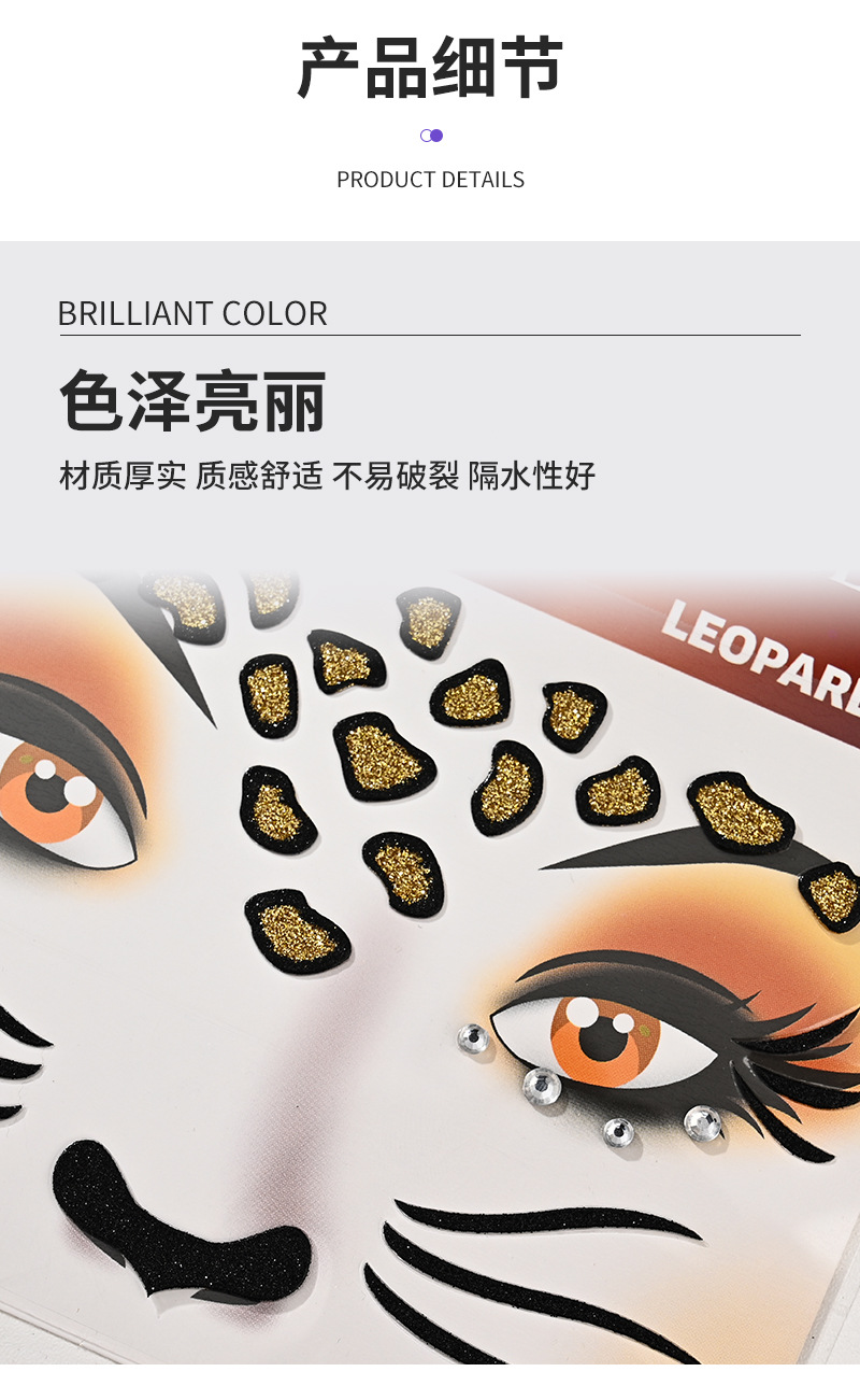 즉시 배송 할로윈 동물 얼굴 다이아몬드 스티커 만화 어린이 공연용 얼굴 메이크업 금색 파우더 페인팅 다이아몬드 스티커