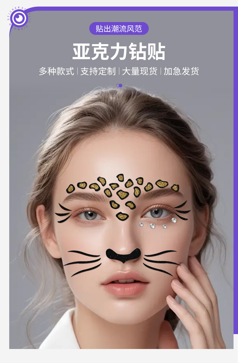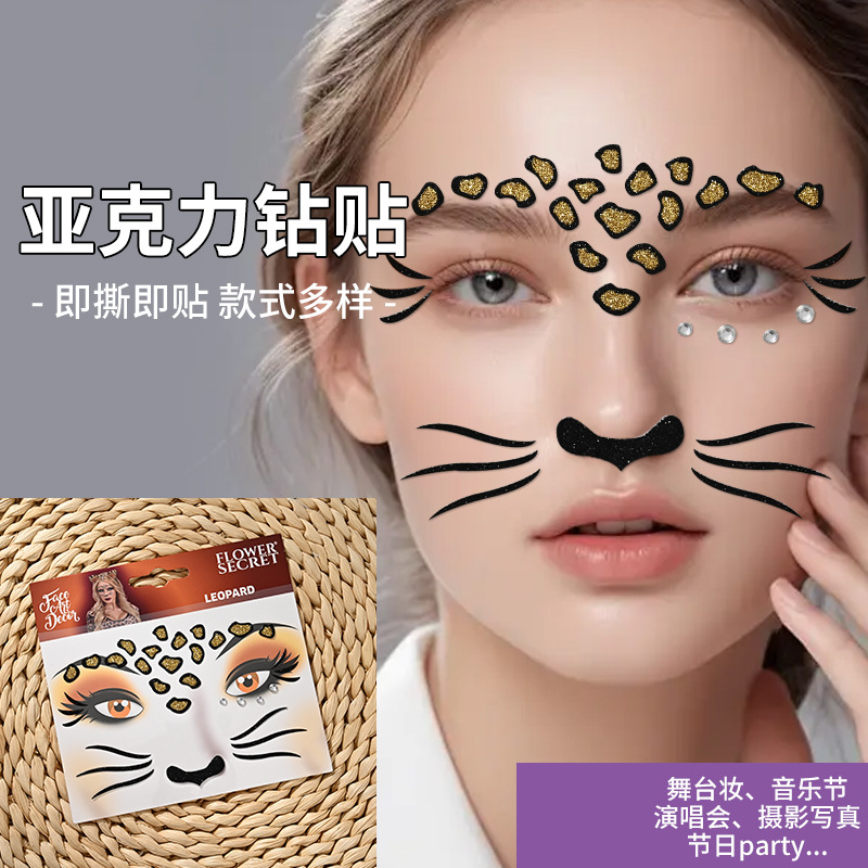 즉시 배송 할로윈 동물 얼굴 다이아몬드 스티커 만화 어린이 공연용 얼굴 메이크업 금색 파우더 페인팅 다이아몬드 스티커스토어 가기