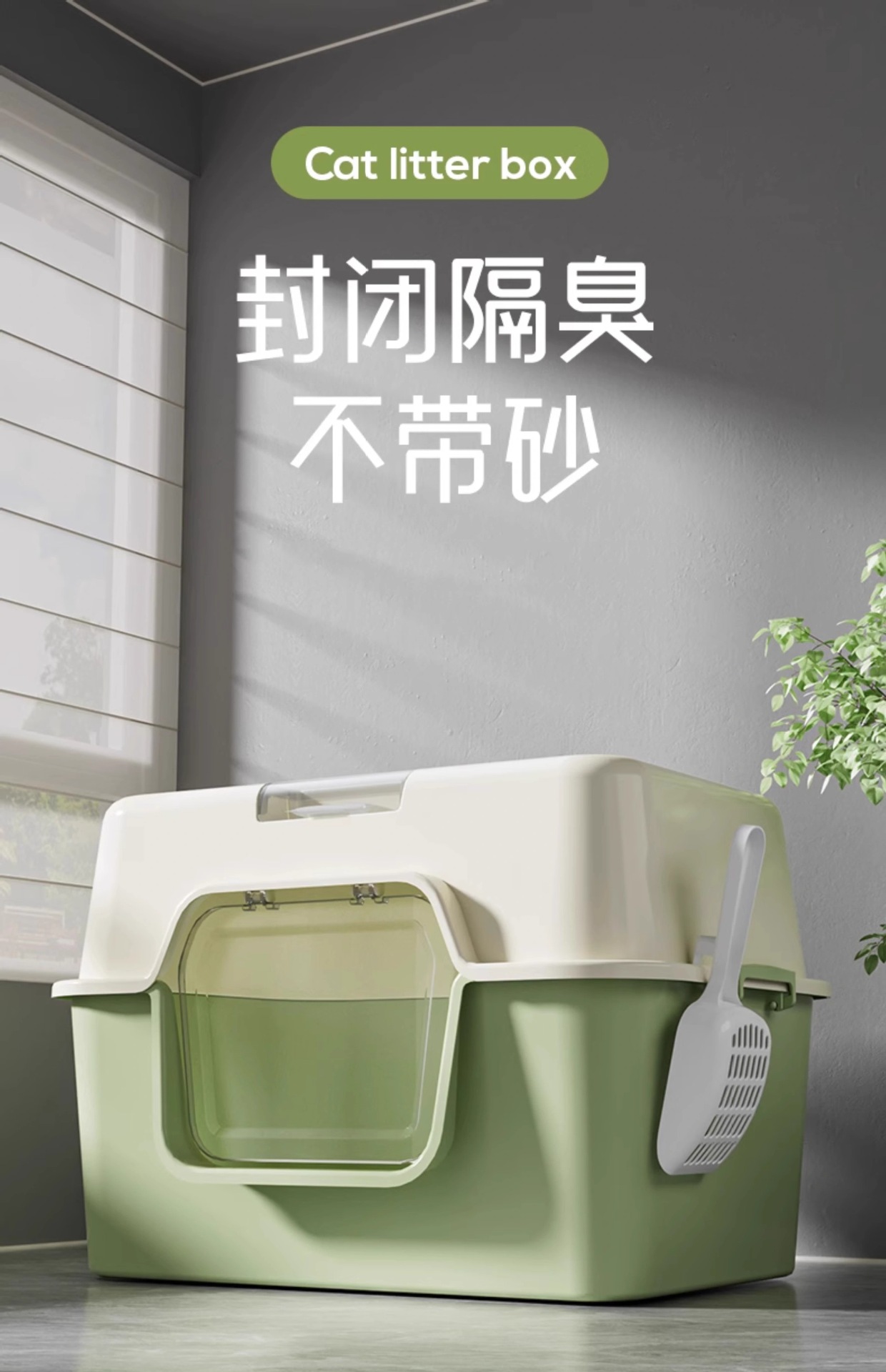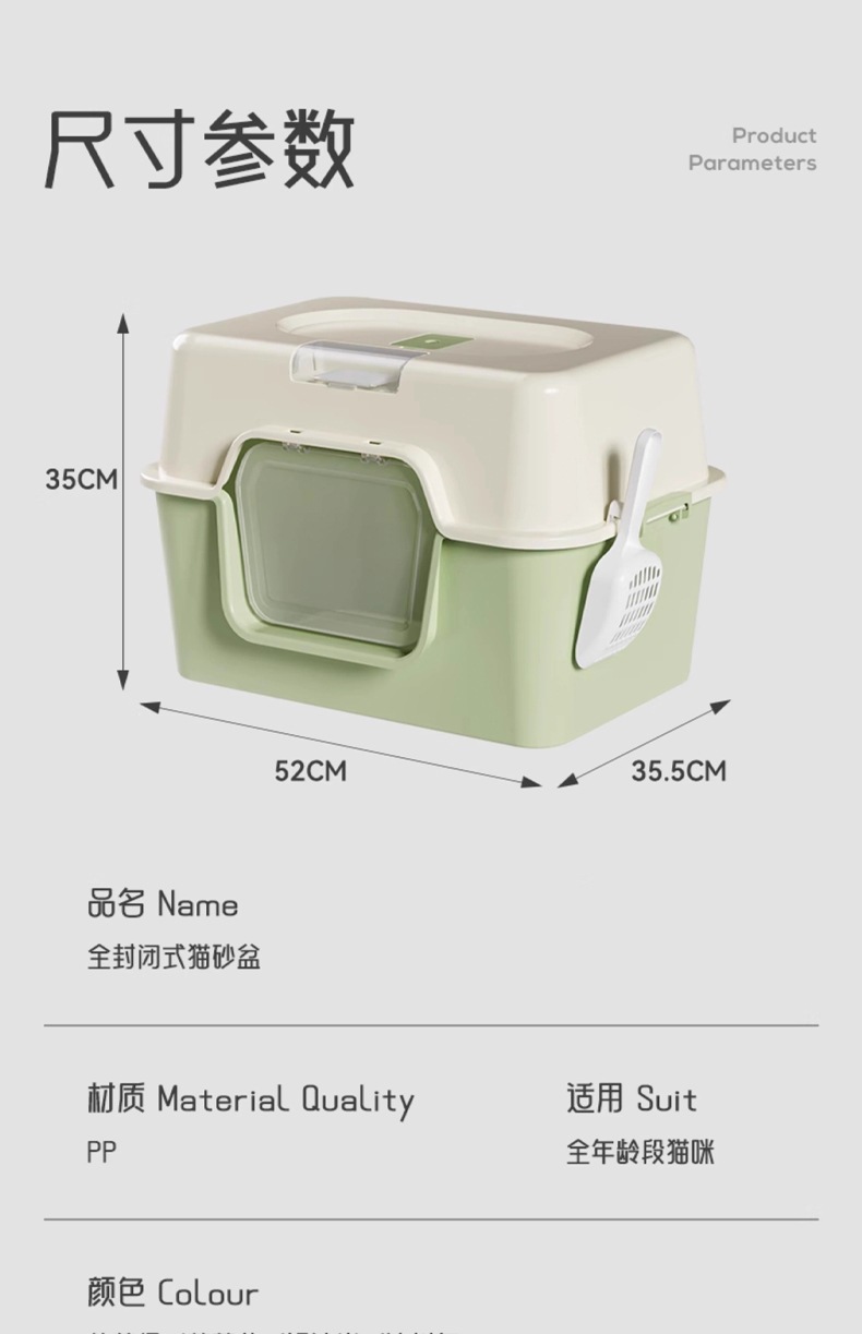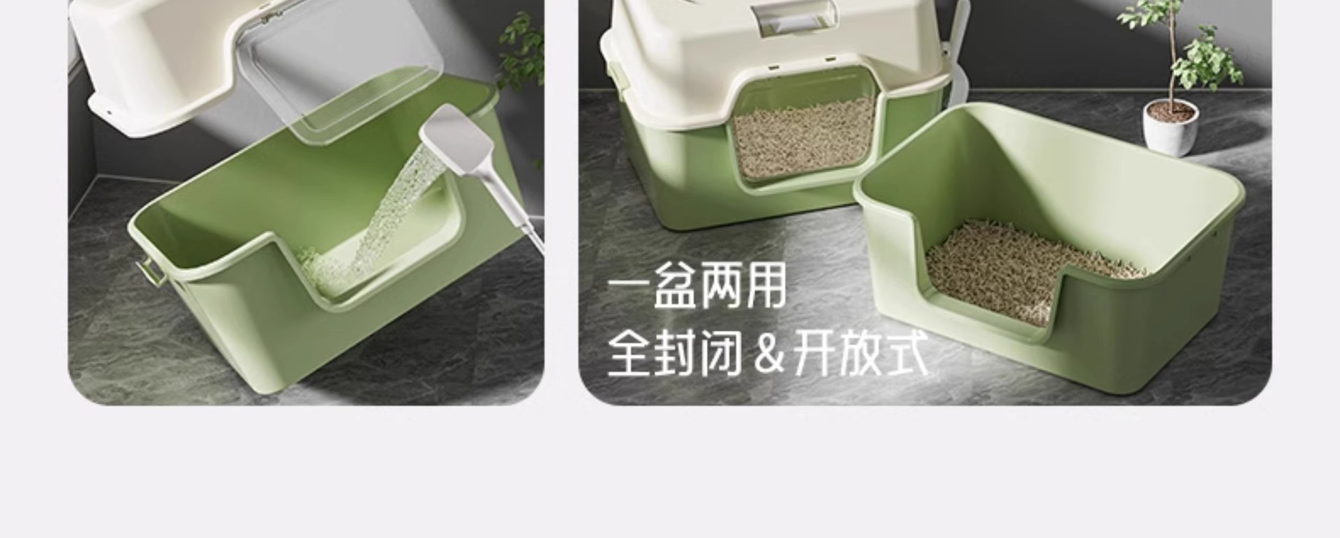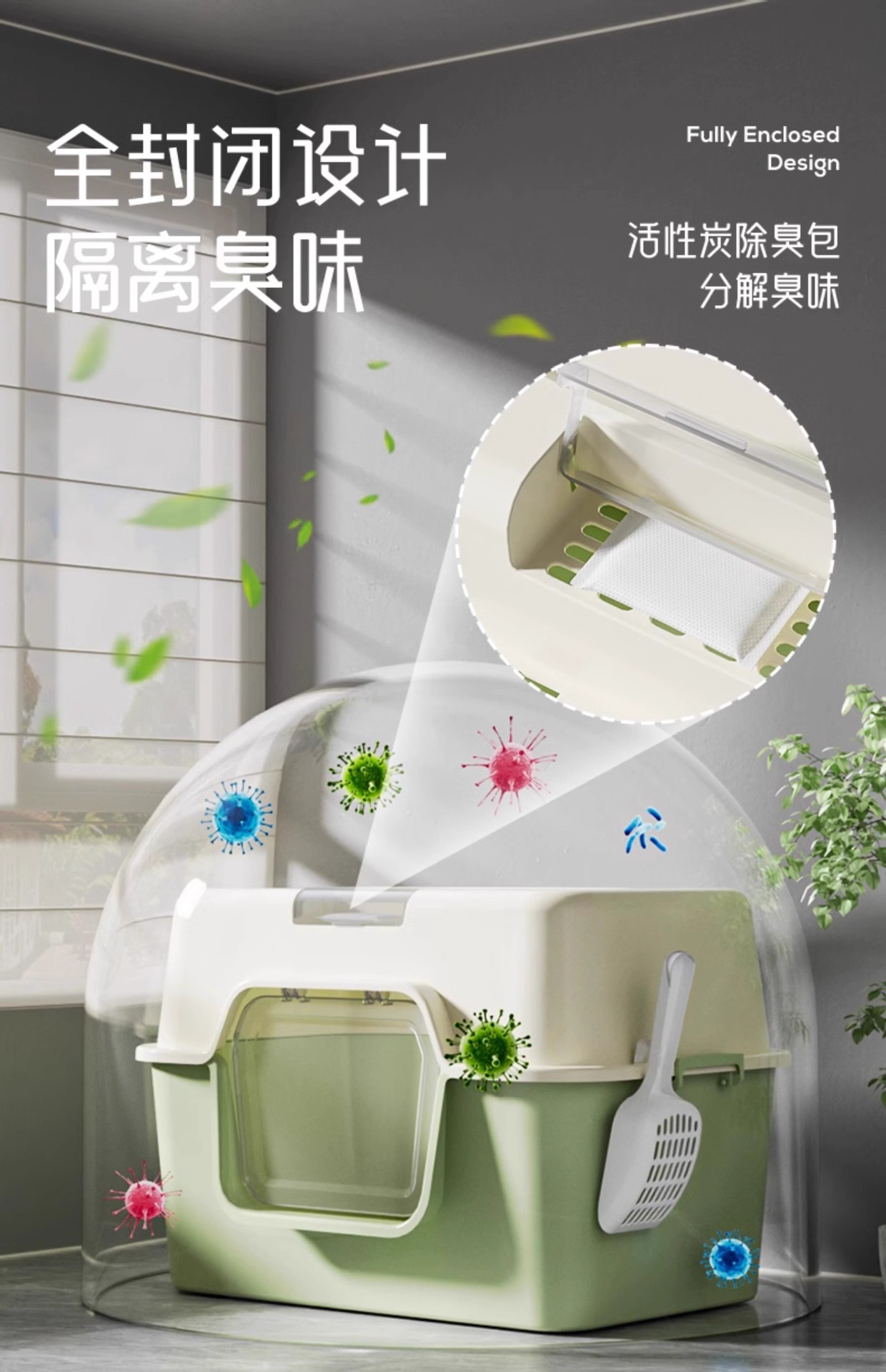 • 올리브 그린 + UV 램프 [탈취 팩 포함] 고양이 배변 상자 + 고양이 배변 국자