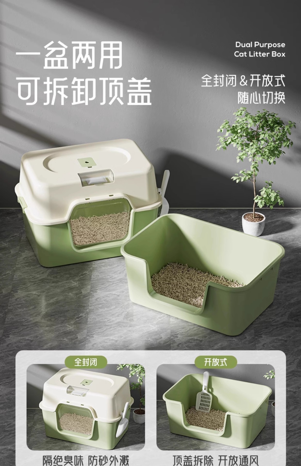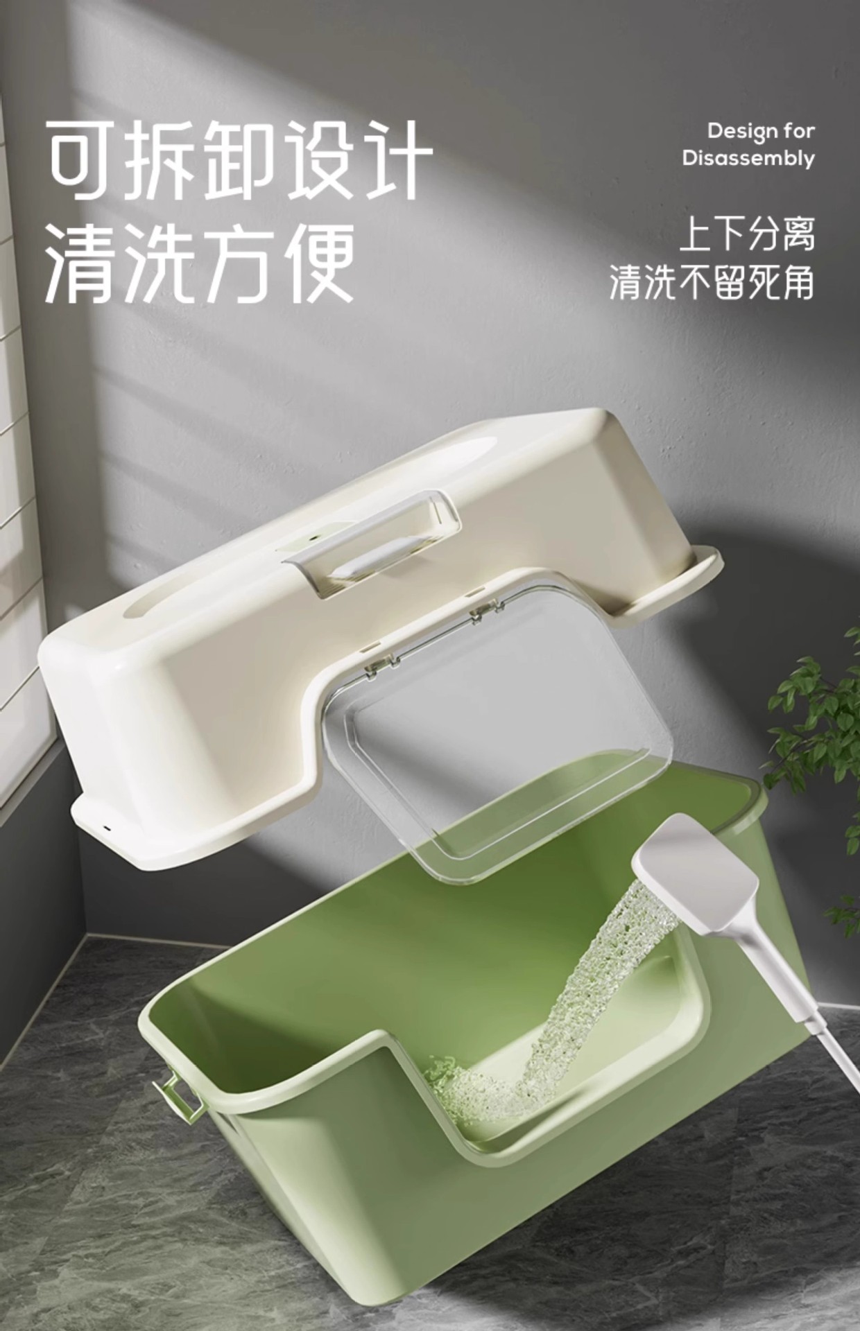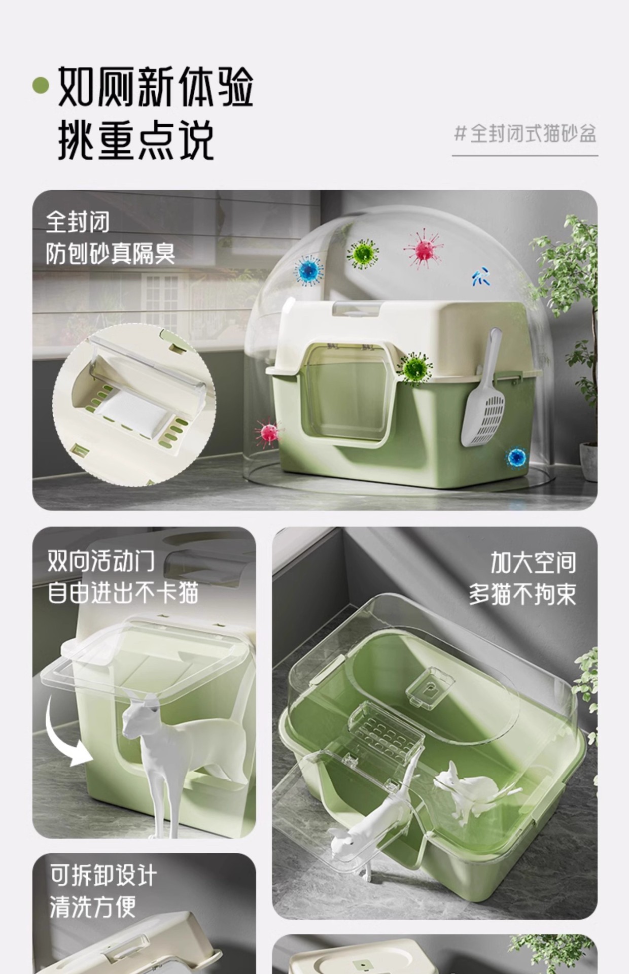 • 올리브 그린 + UV 램프 [탈취 팩 포함] 고양이 배변 상자 + 고양이 배변 국자
