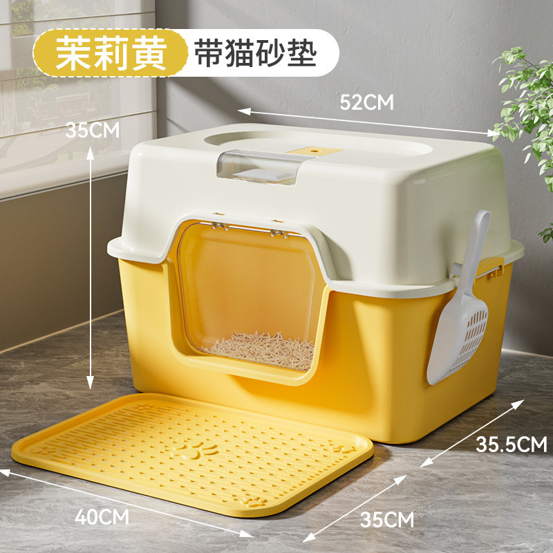 • [자스민 옐로우 + UV 램프] 고양이 배변 상자 + 고양이 배변 매트 + 고양이 배변 국자