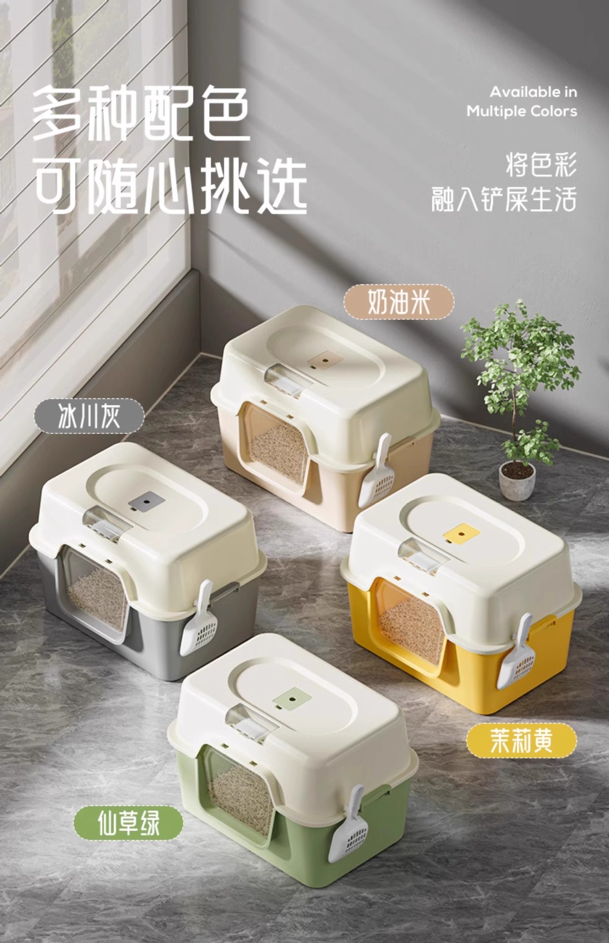 • 두꺼워지고 넓어진 글레이셔 그레이 [완전 밀폐형 냄새 차단 고양이 배변 상자] 고양이 배변 국자 + 탈취 가방 포함