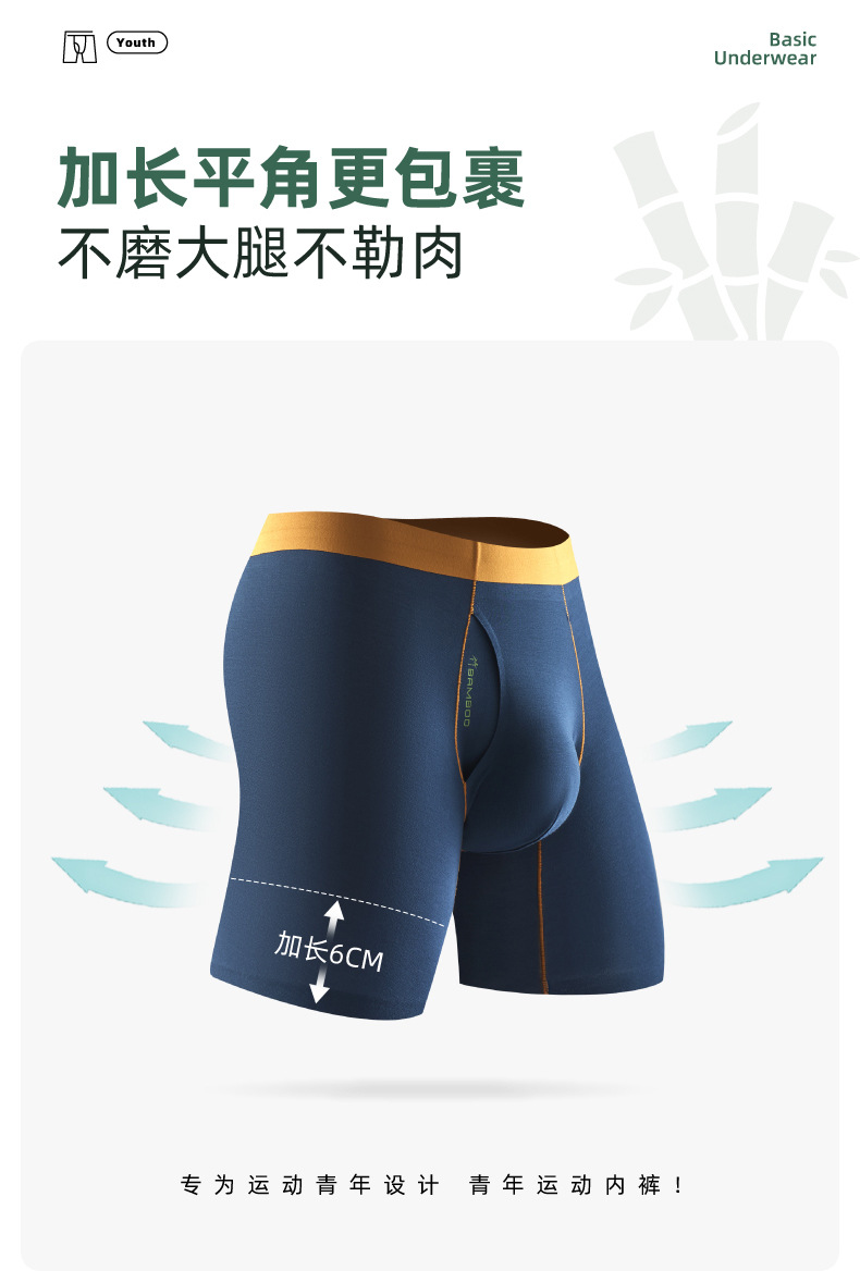 남성용 속옷 대나무 섬유 길어진 스포츠용 무봉제 통기성 오픈형 스포츠 사각팬티
