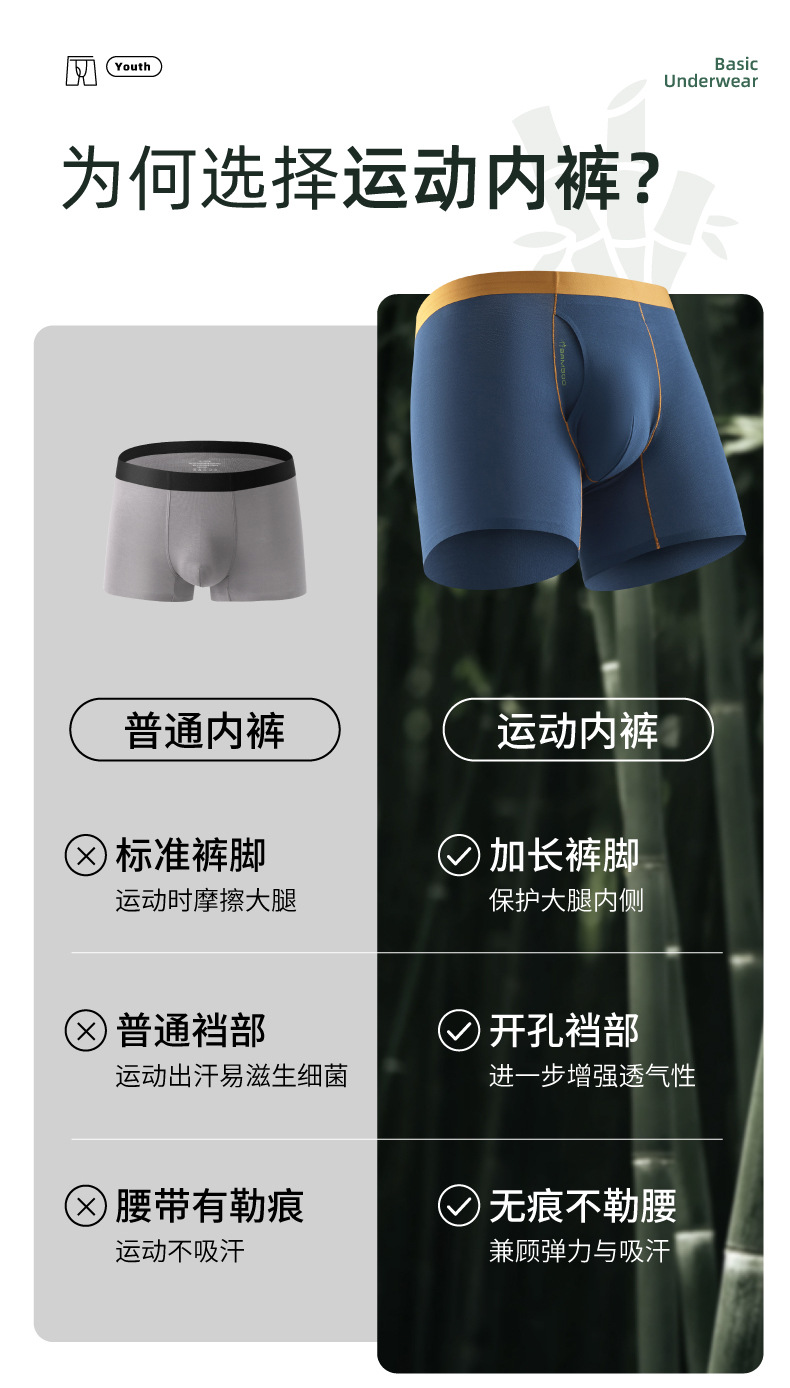 남성용 속옷 대나무 섬유 길어진 스포츠용 무봉제 통기성 오픈형 스포츠 사각팬티스토어 가기