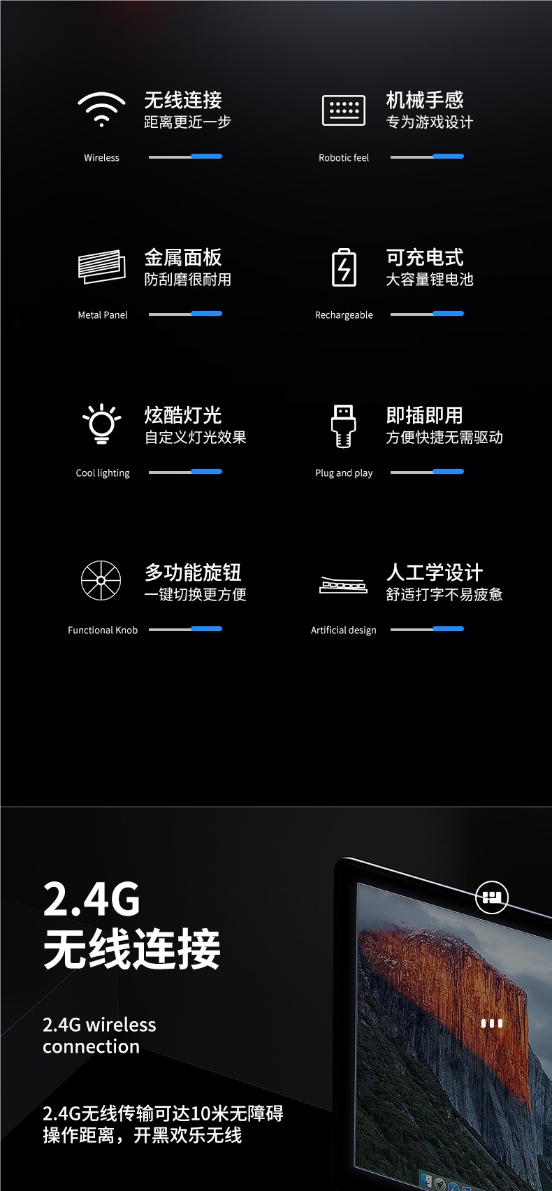 • 없음 - 금속 회색 청색광 세트(충전식)는 수신기 1개를 공유합니다. - 예 - 키 104개 - 표준