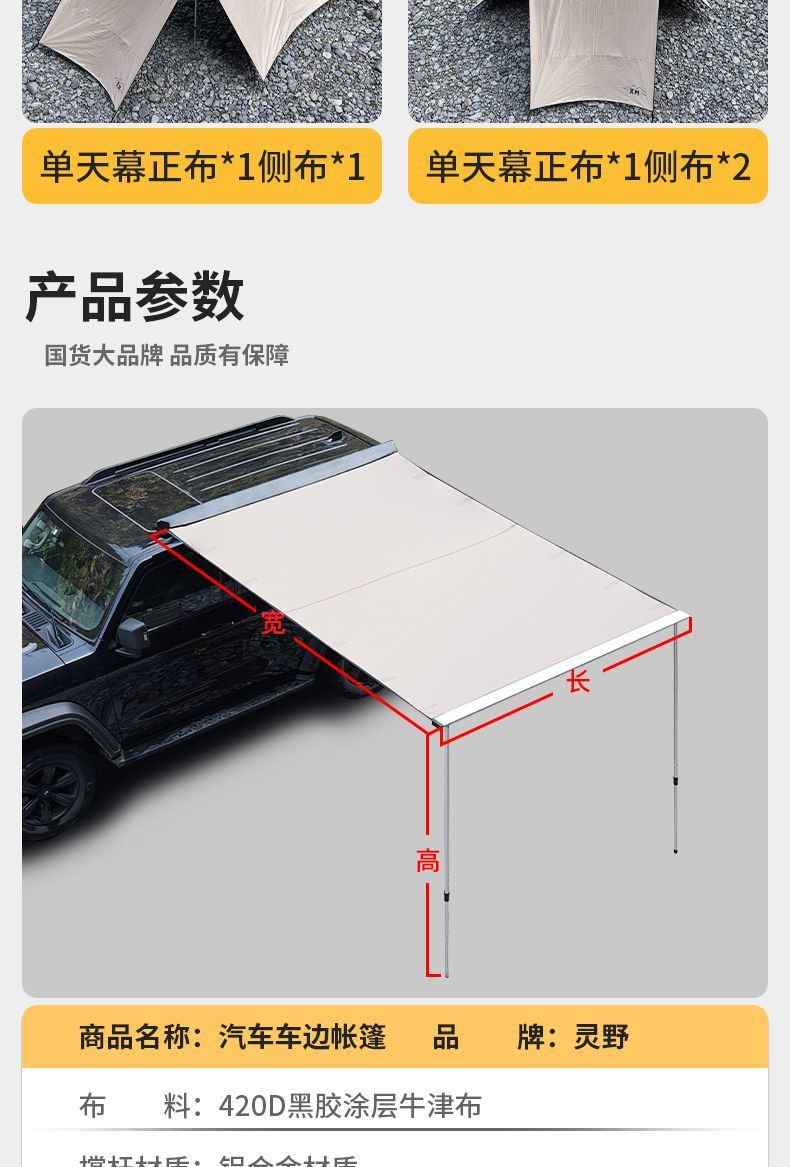 • [420D 비닐] 1.8* 2.5m 자동차 사이드 텐트(라이트 포함)