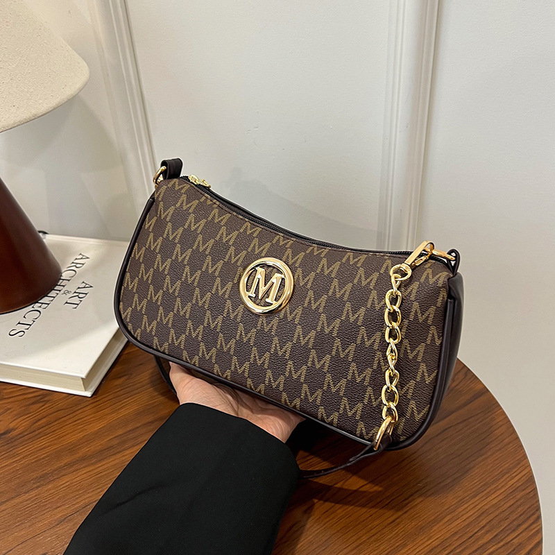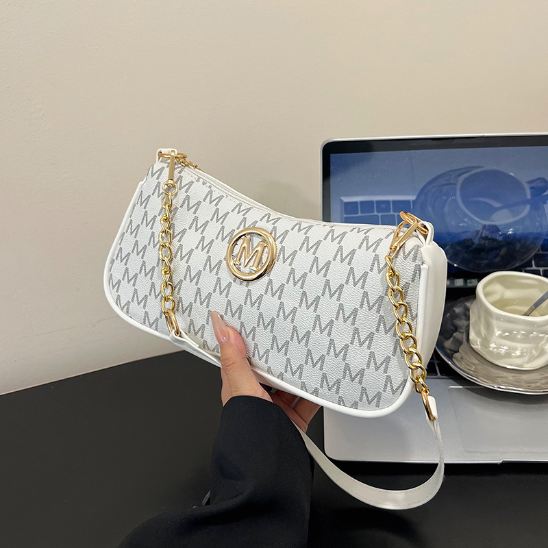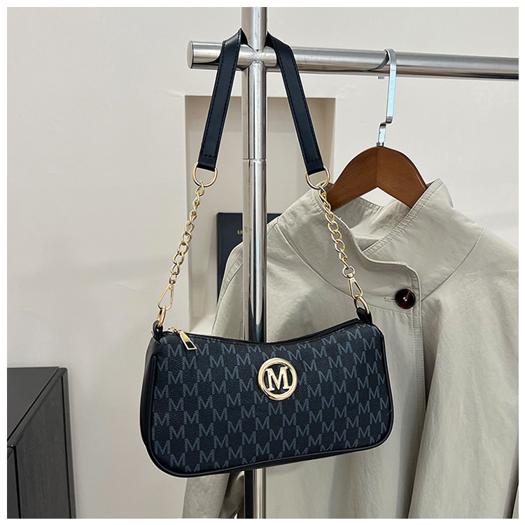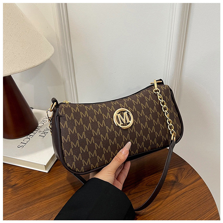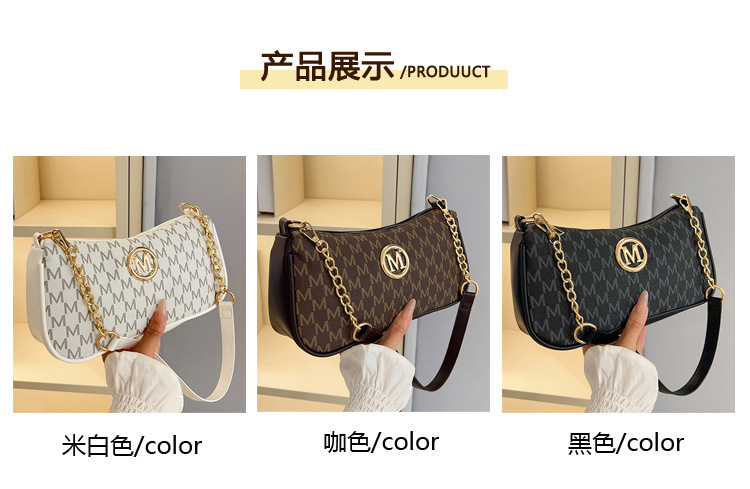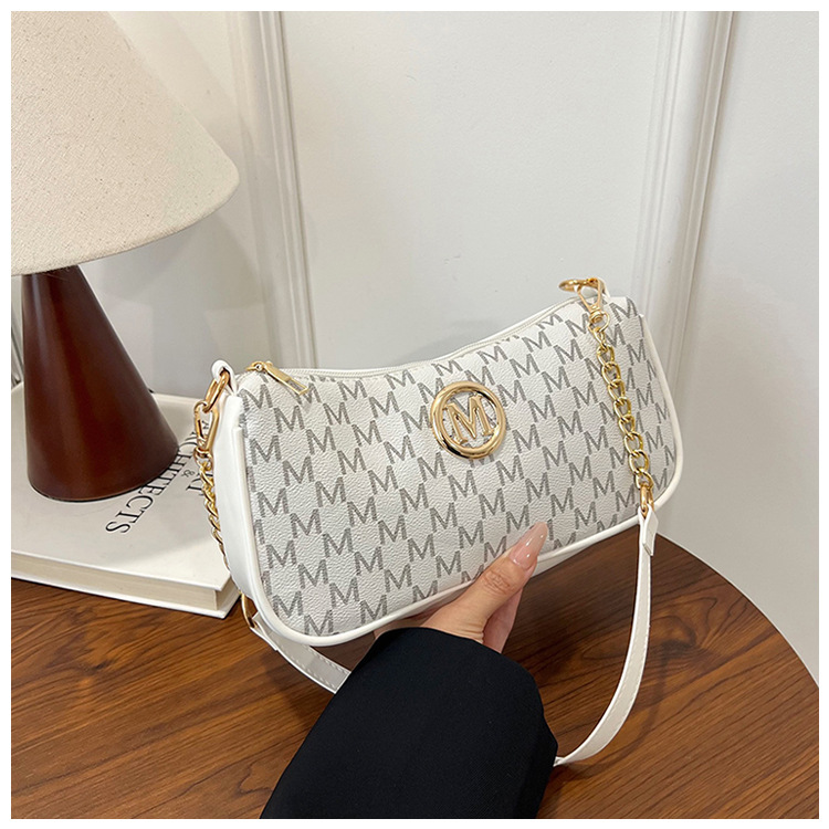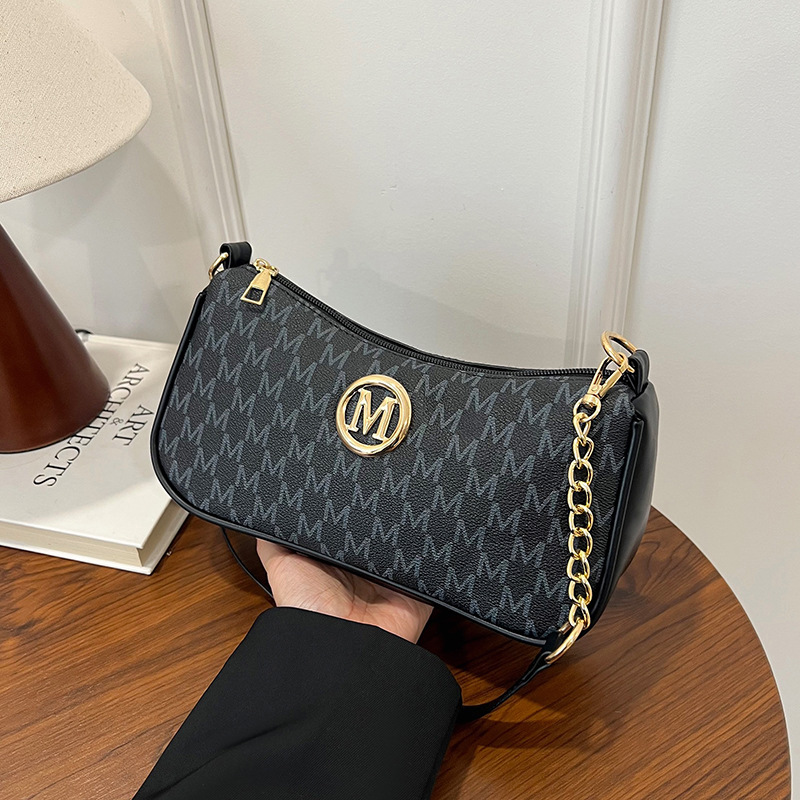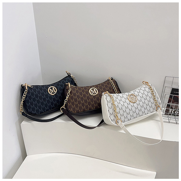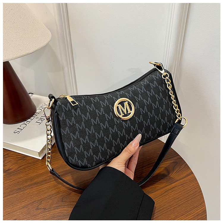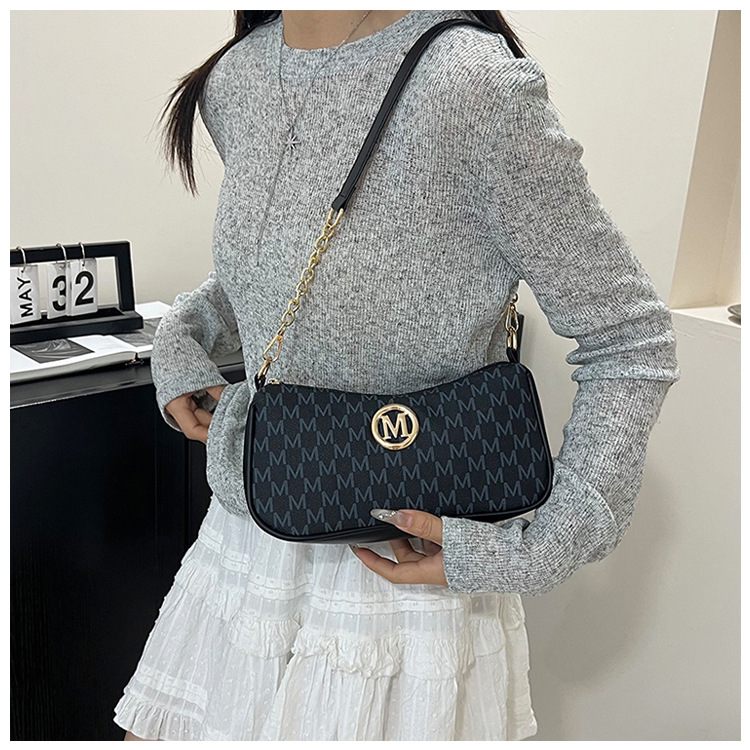 올해의 패션 2025 새로운 틈새 겨드랑이 가방, 세련된 맞춤형 숄더백, 문자 프린트 크로스바디 백, 초승달 가방스토어 가기