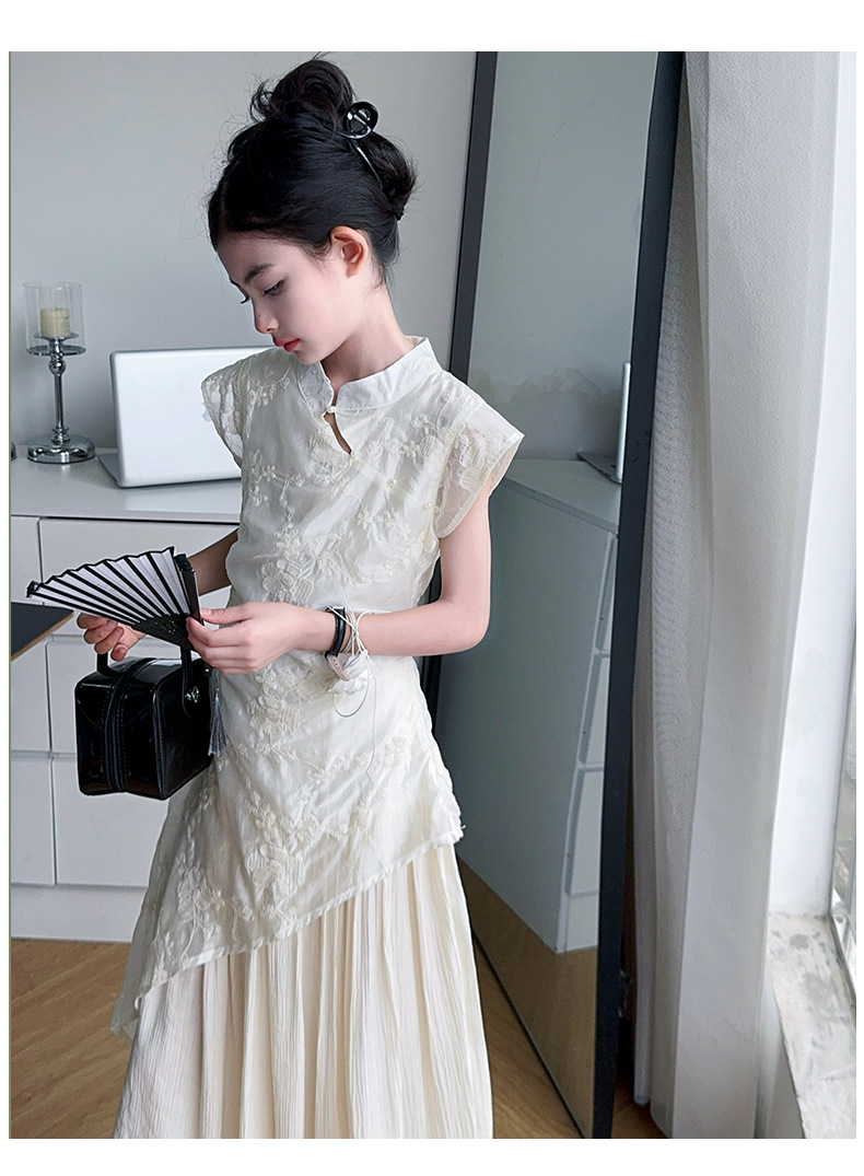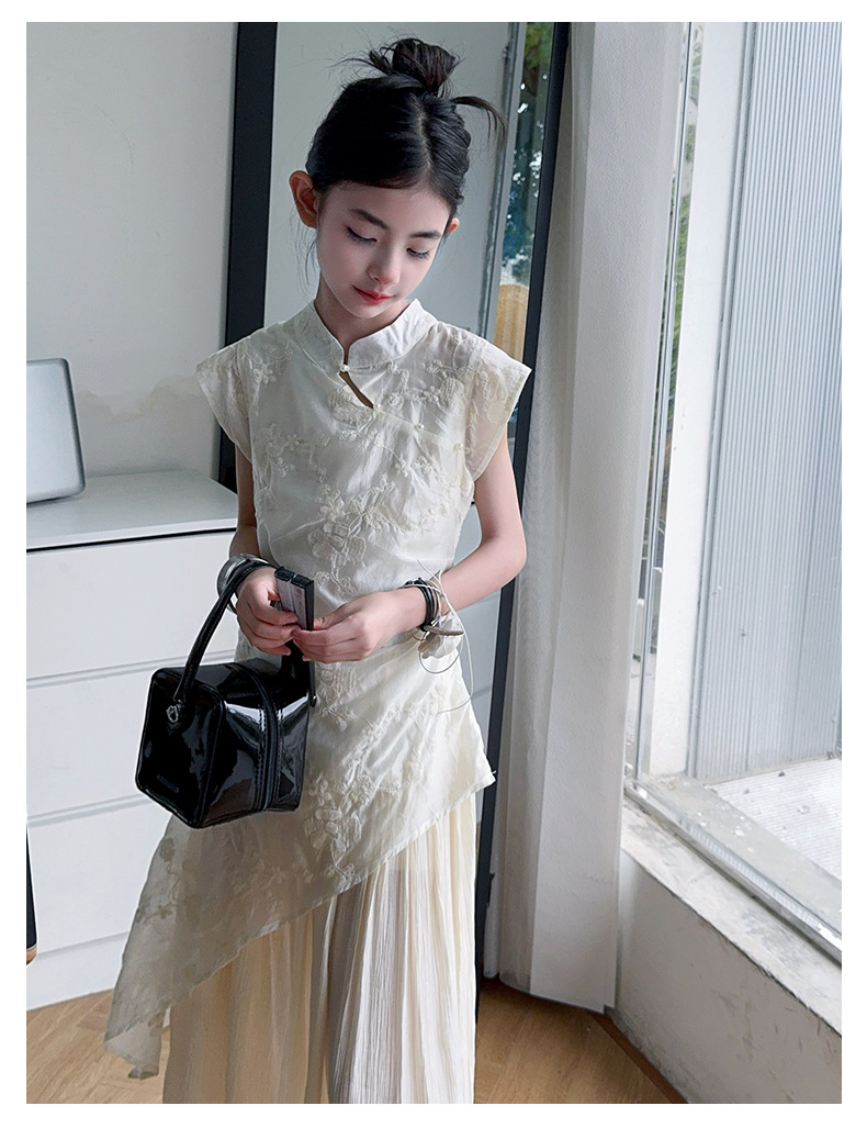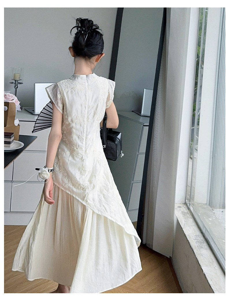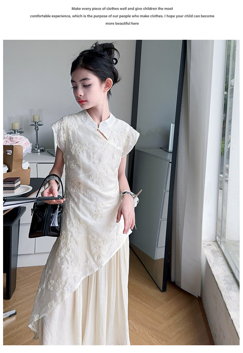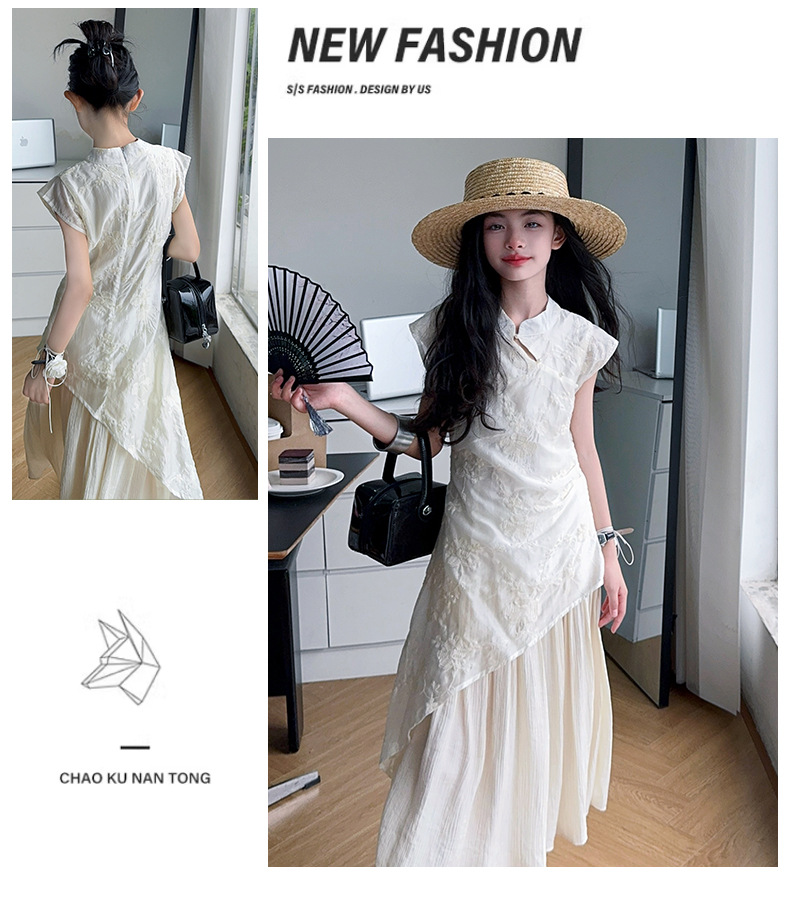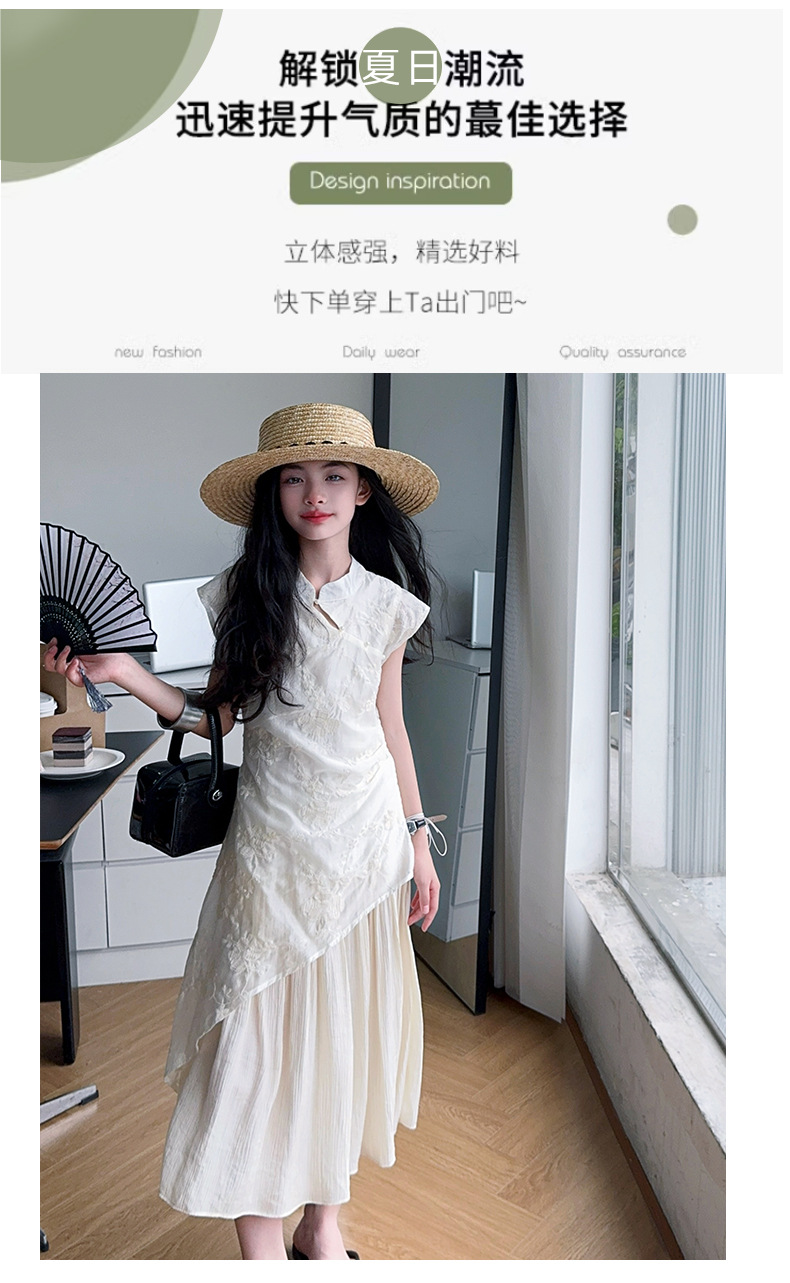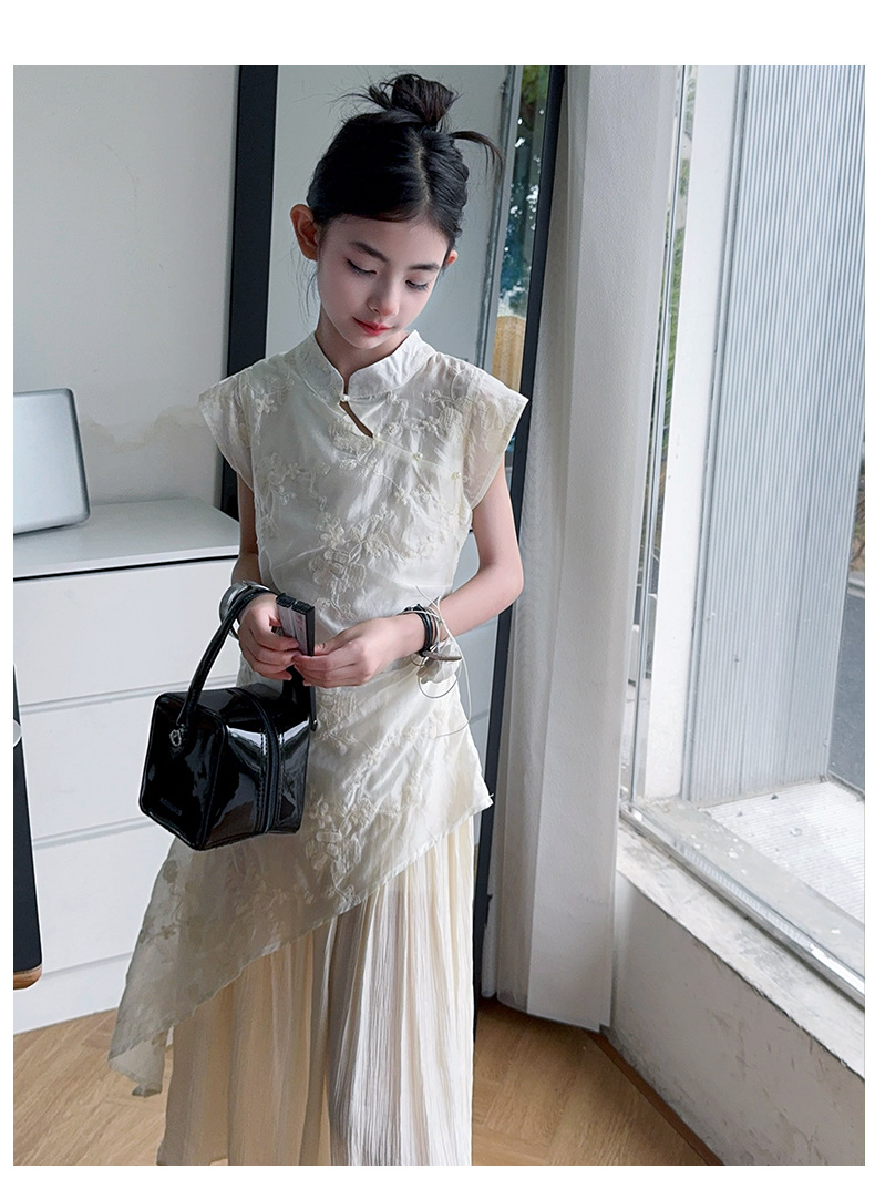 여아 드레스 여름 2025 새로운 스타일의 중국식 치파오 드레스, 큰 어린이 스타일 허리 긴 스커트, 어린이 스커트 유행