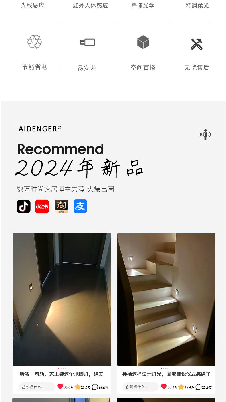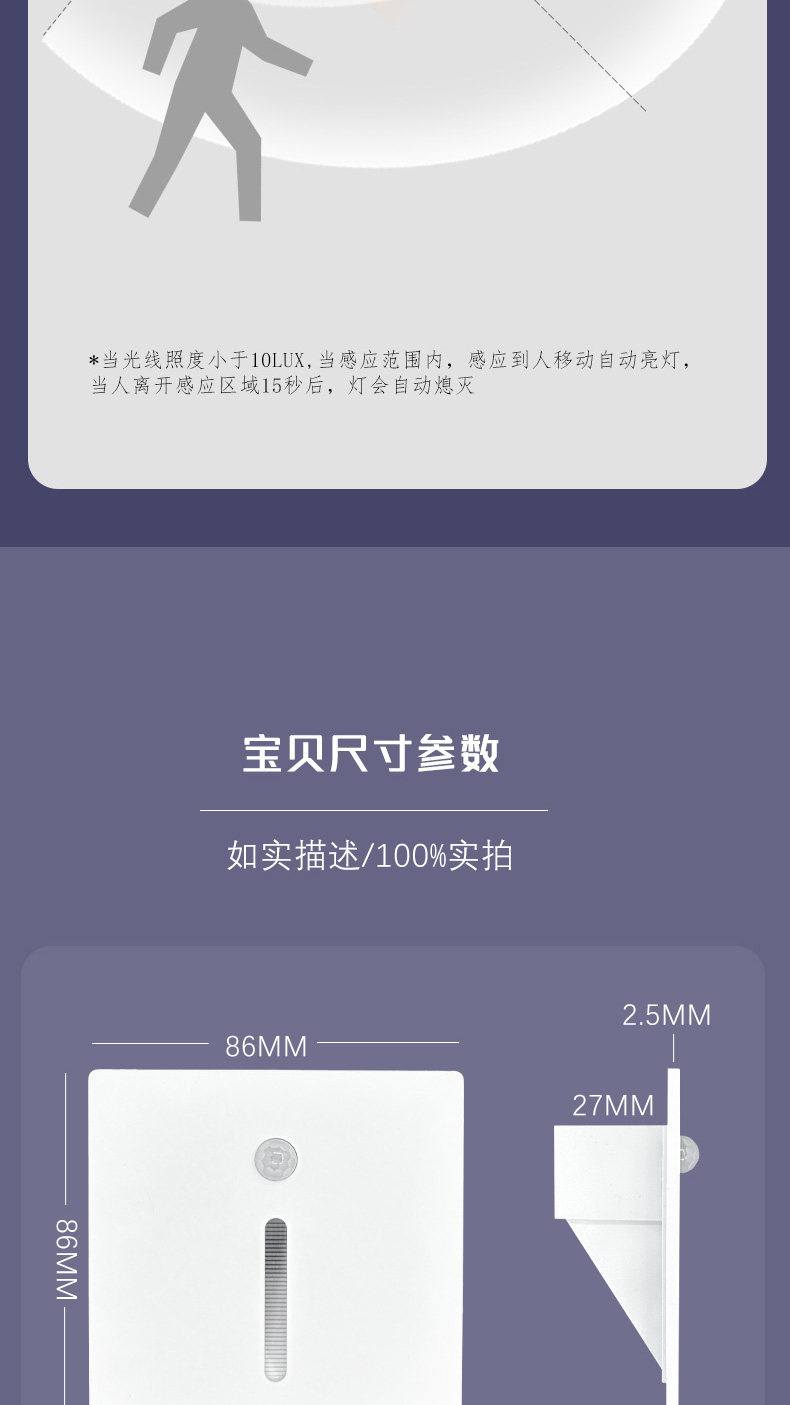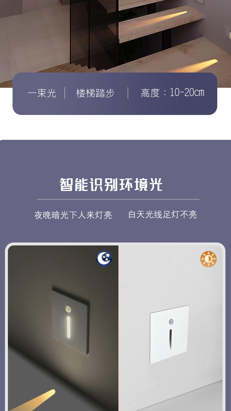 내장형 자기 발광 센서 램프 초박형 계단 단계 LED 코너 지능형 적외선 86 유형 1 와트 야간 조명스토어 가기