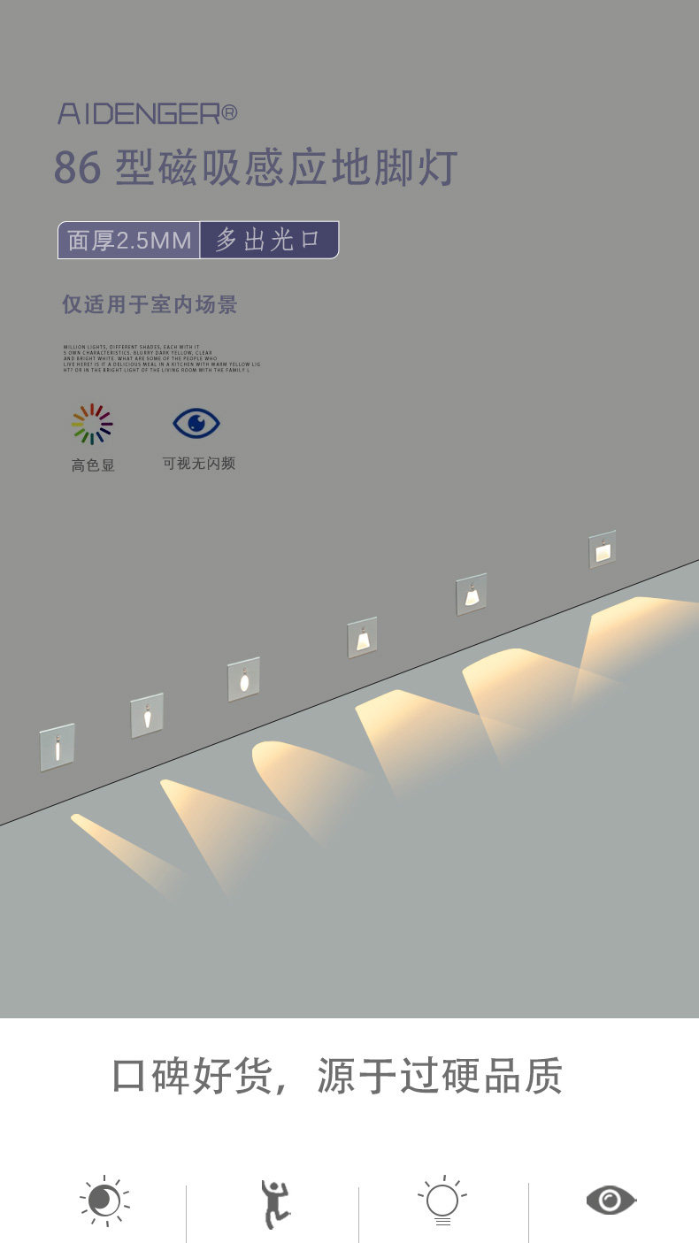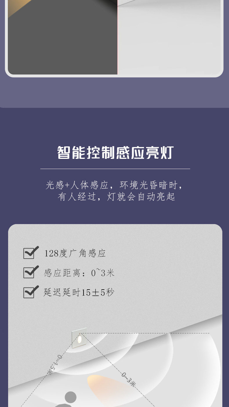내장형 자기 발광 센서 램프 초박형 계단 단계 LED 코너 지능형 적외선 86 유형 1 와트 야간 조명