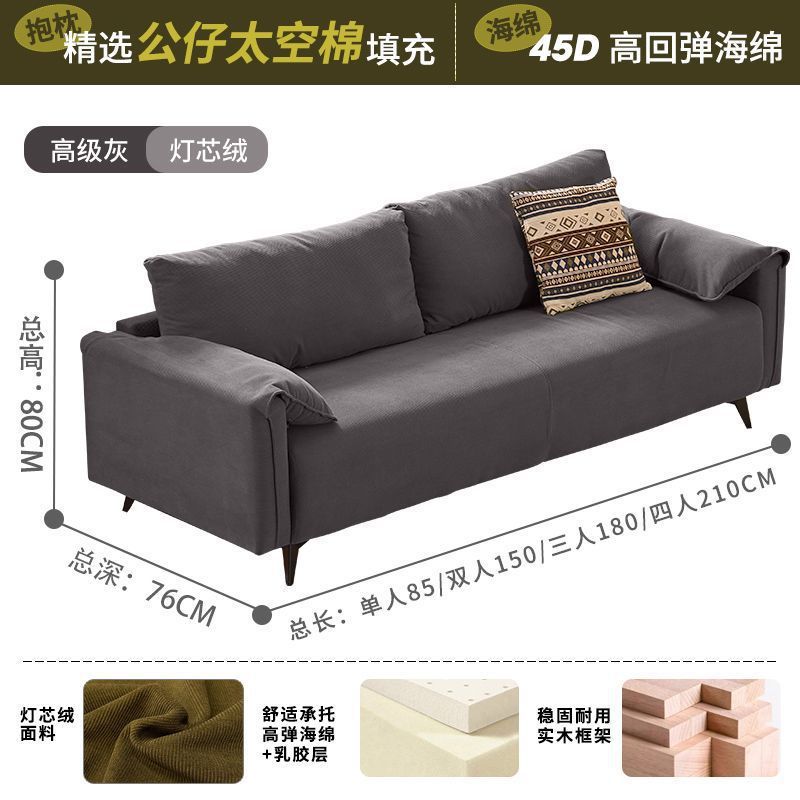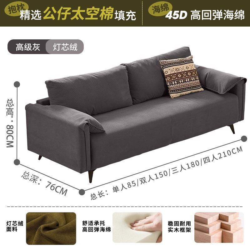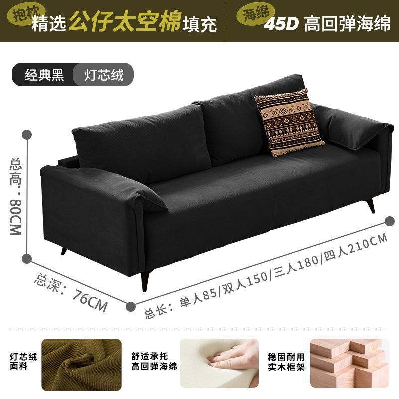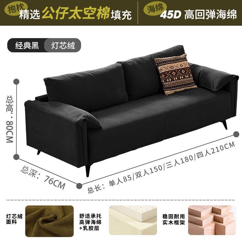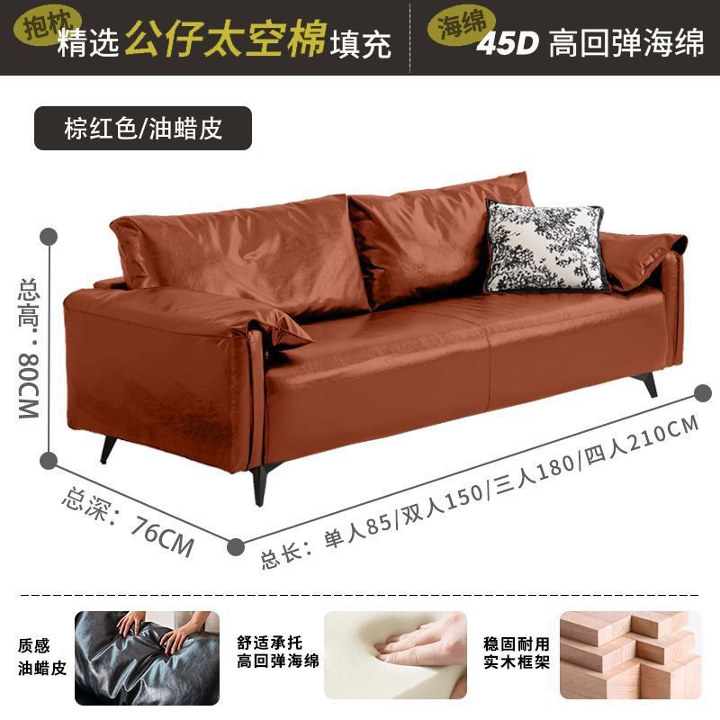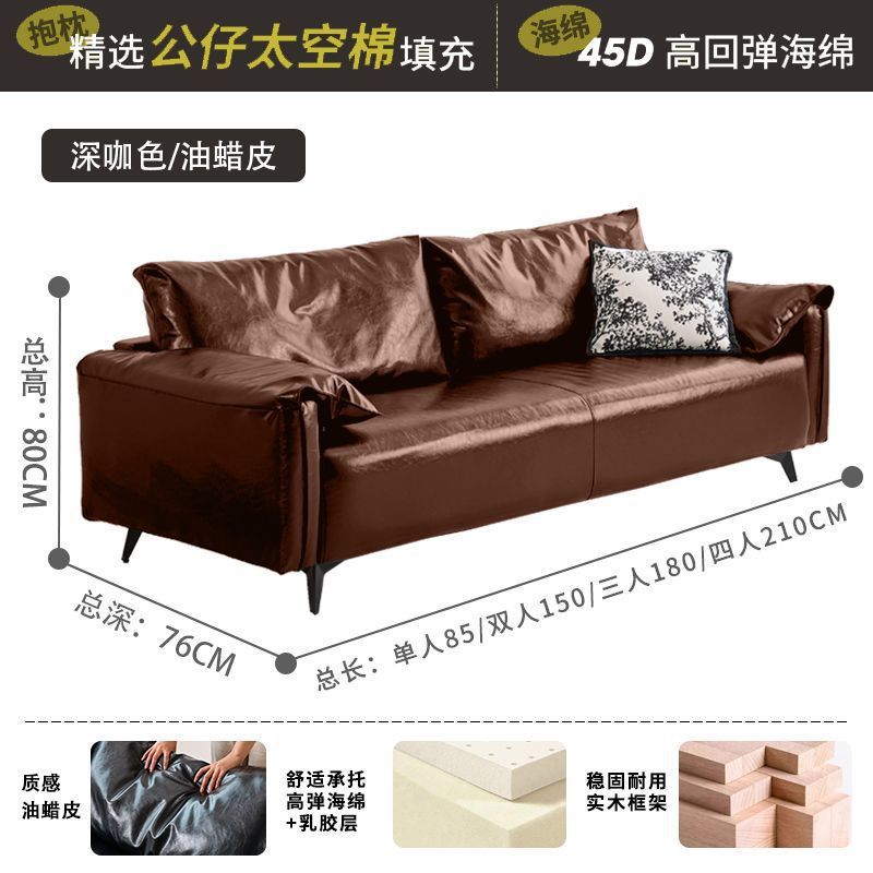 검은색 소파 작은 거실 현대적인 미니멀리스트 아파트 침실 임대 빈티지 오일 왁스 가죽 아트 더블 소파