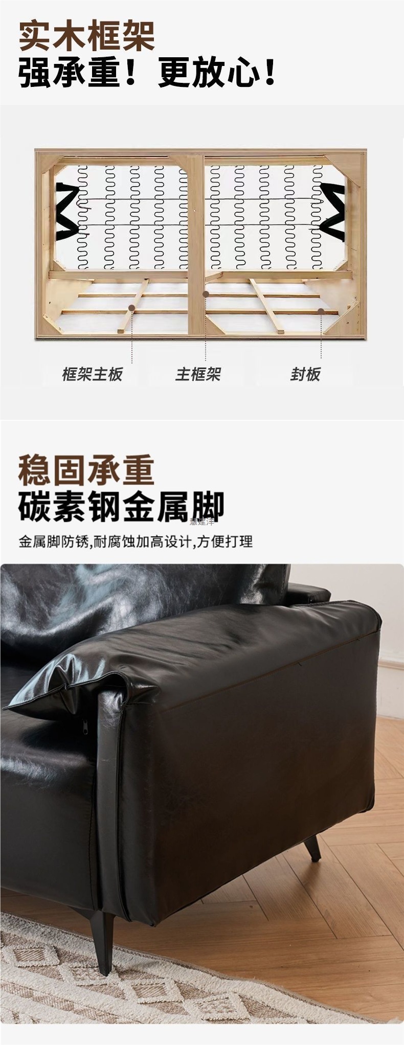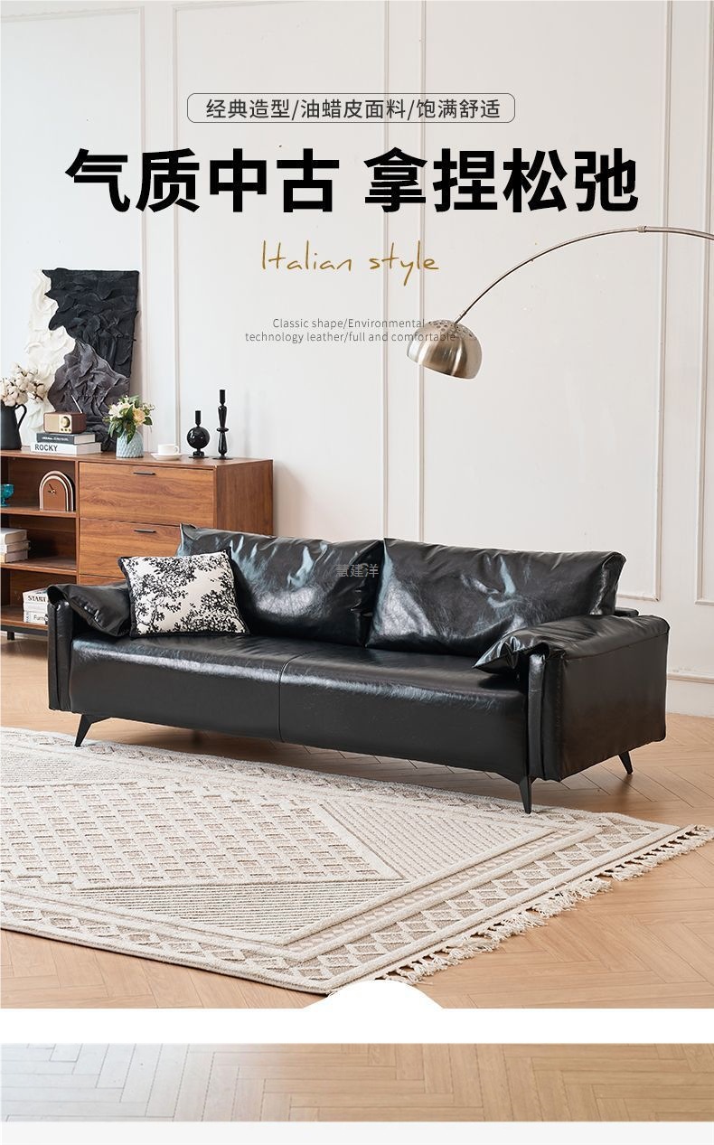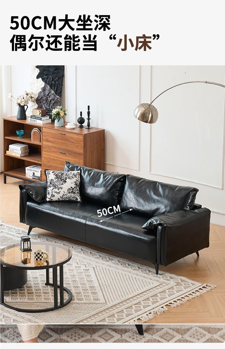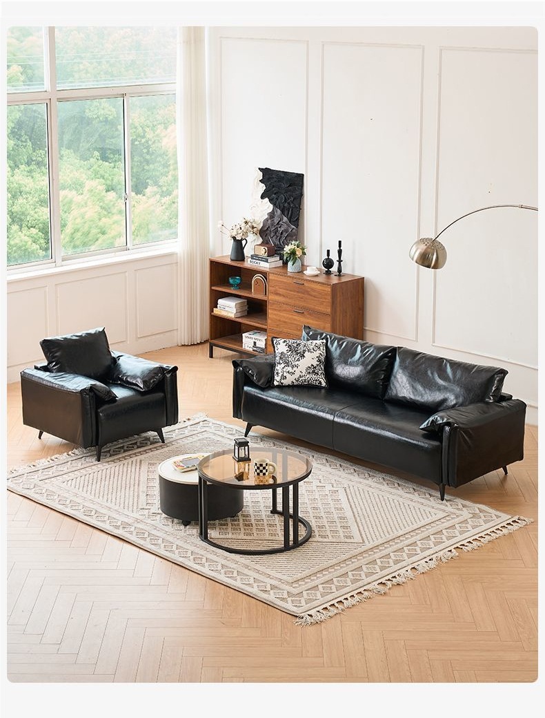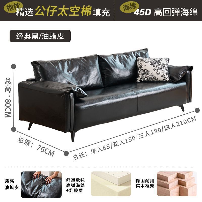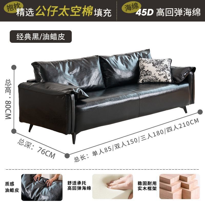 검은색 소파 작은 거실 현대적인 미니멀리스트 아파트 침실 임대 빈티지 오일 왁스 가죽 아트 더블 소파스토어 가기