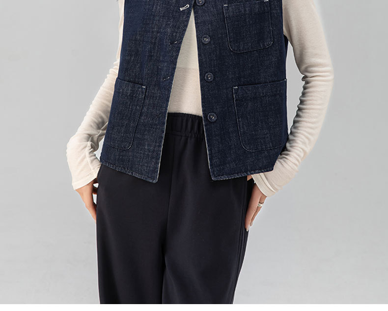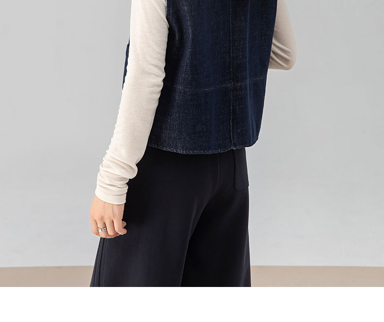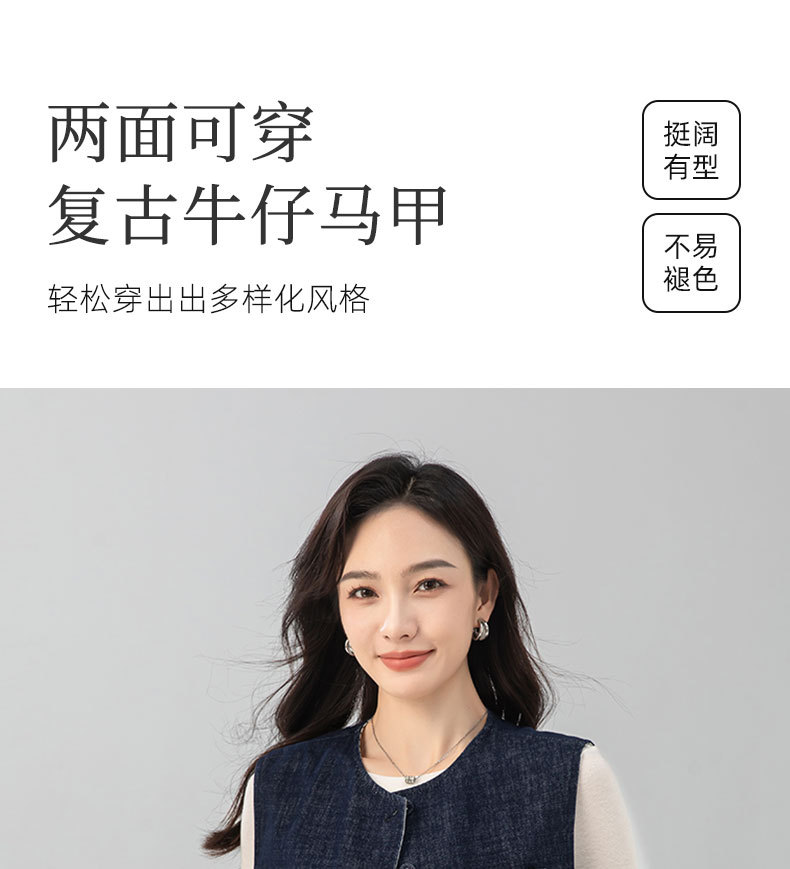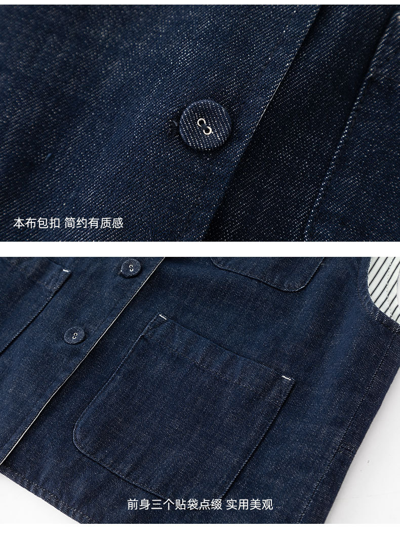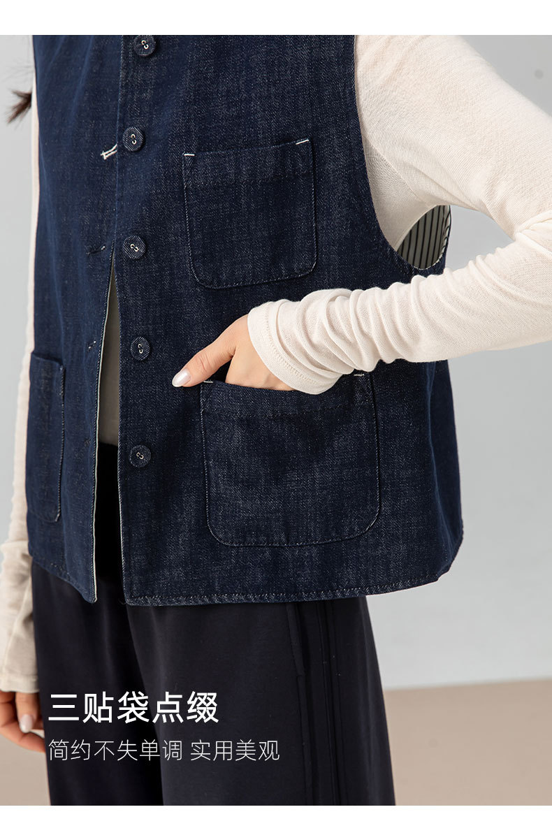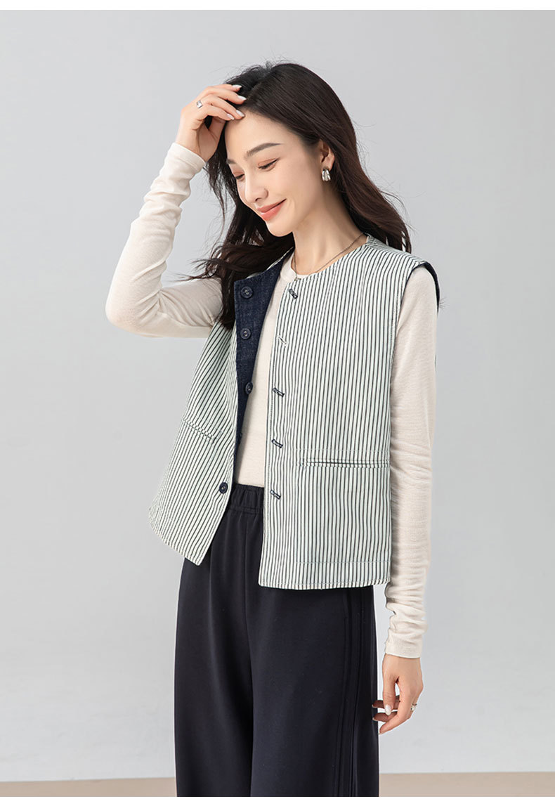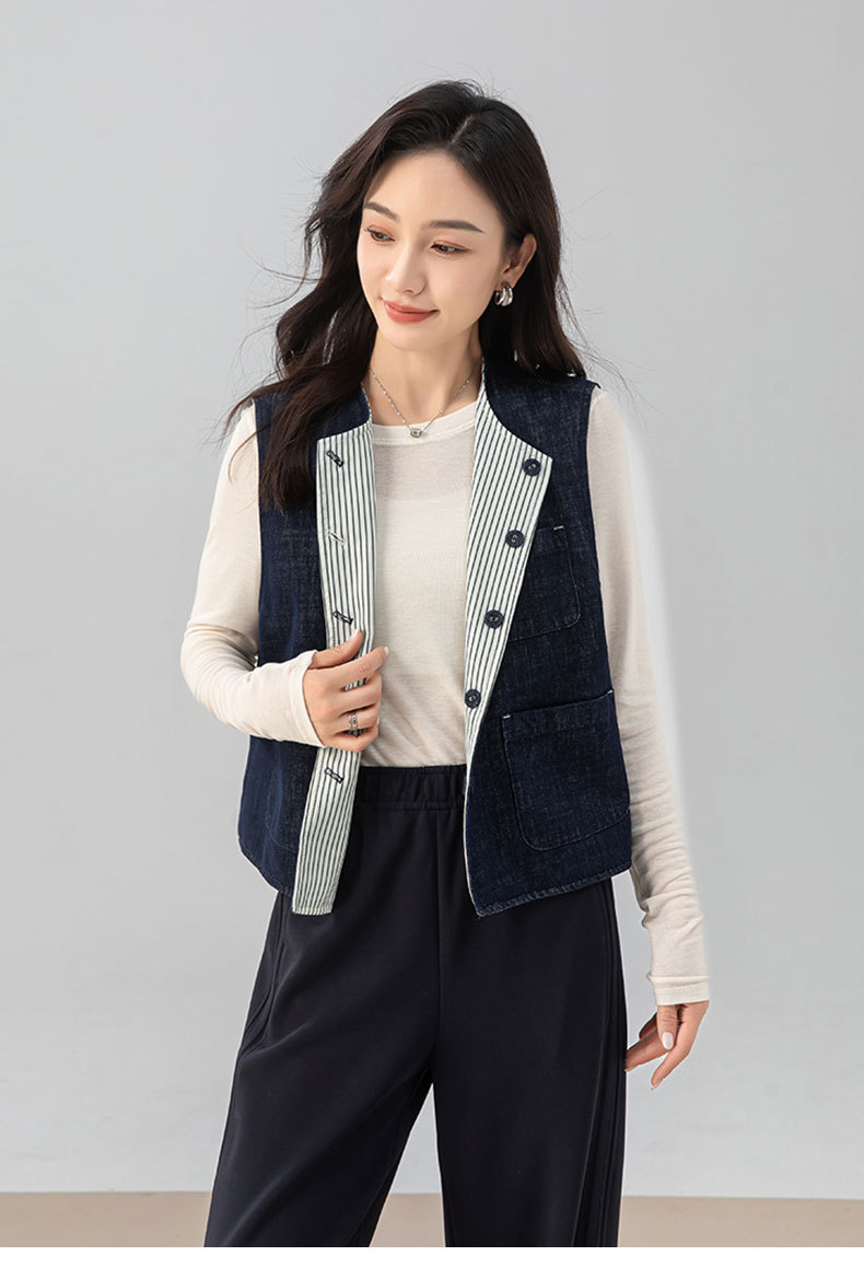 Yifei 레트로 리버시블 데님 조끼 여성 가을 새로운 스타일 약간 느슨한 슬리밍 대비 색상 세로 줄무늬 민소매 탑