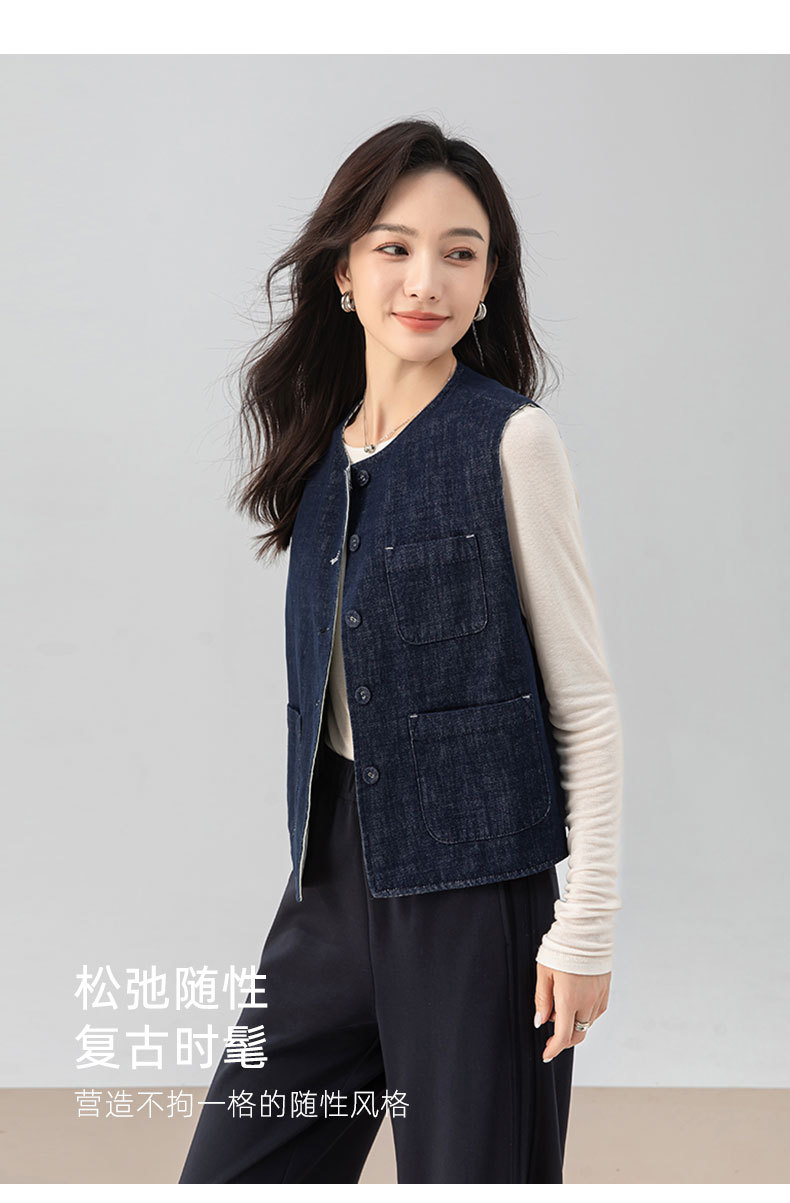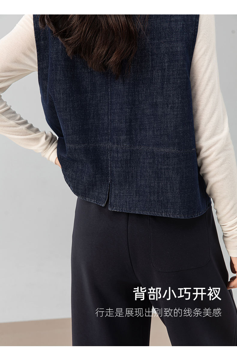 Yifei 레트로 리버시블 데님 조끼 여성 가을 새로운 스타일 약간 느슨한 슬리밍 대비 색상 세로 줄무늬 민소매 탑스토어 가기