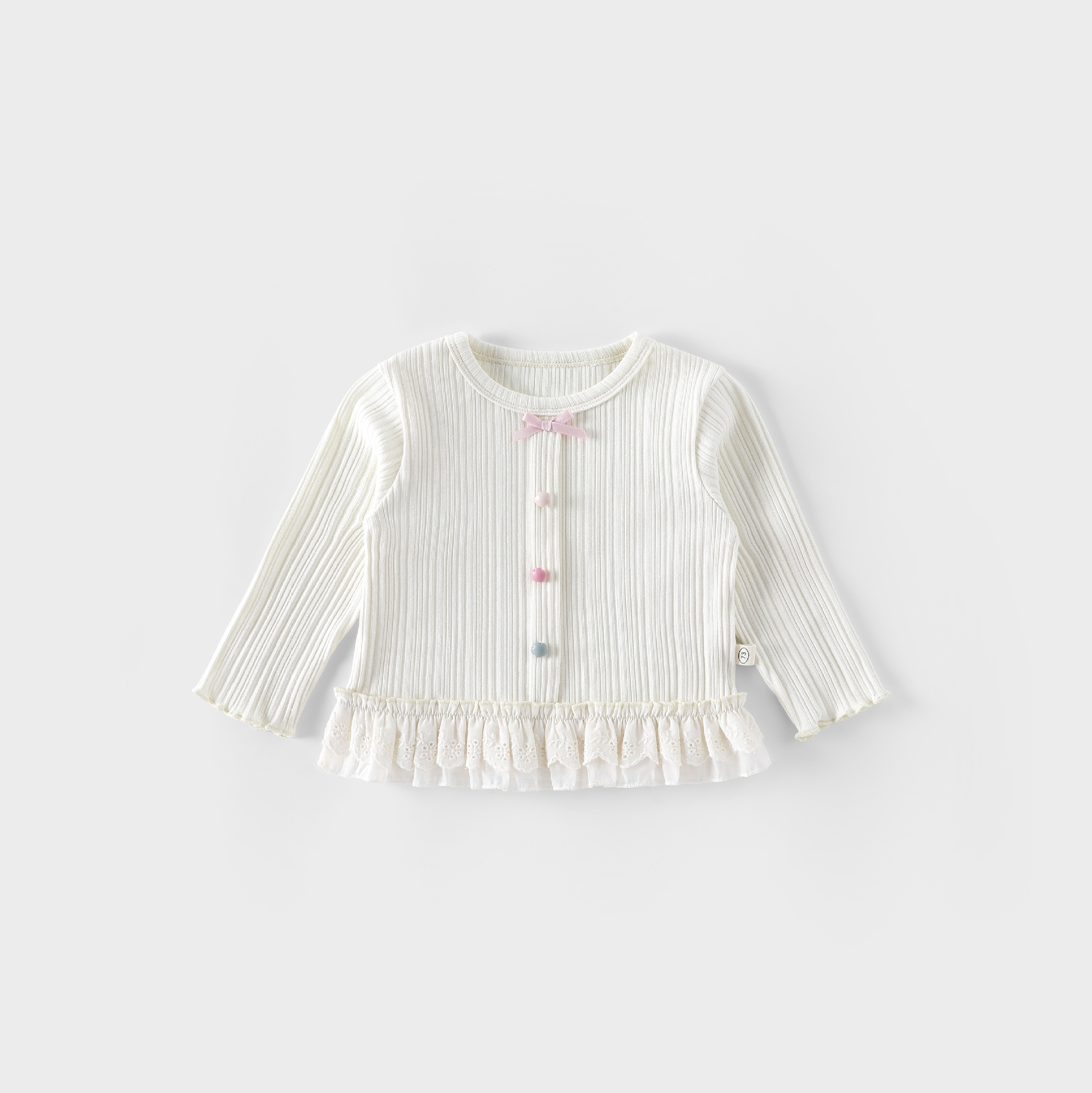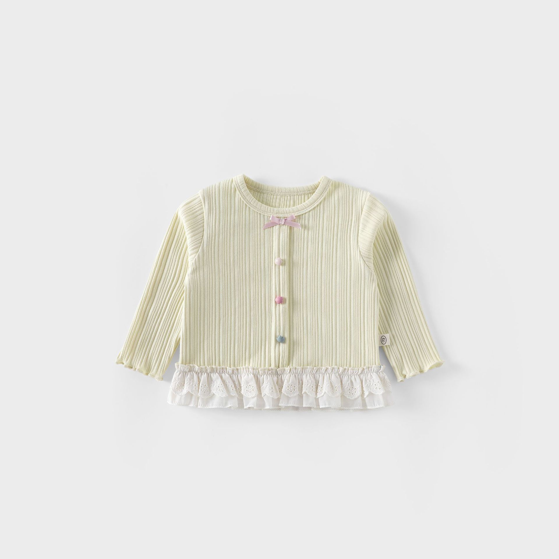 여자 한국 스타일 탑 2025 새로운 가을 어린이 가을 옷 아기 소녀 달콤한 활 컬러 버튼 골지 코트스토어 가기