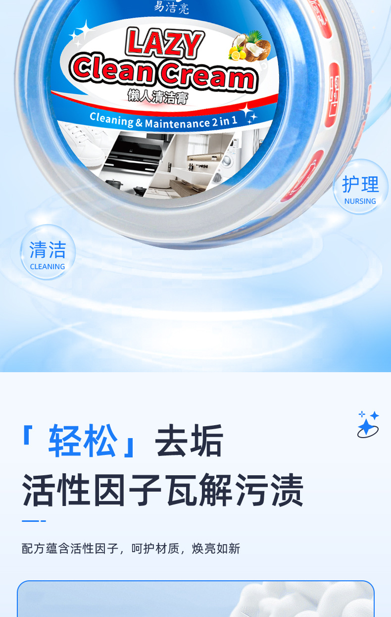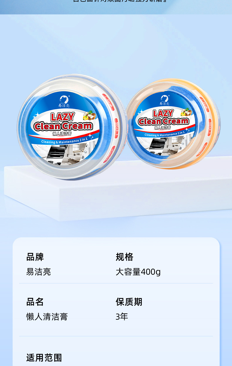 • Yijieliang 400g 게으른 청소 크림 파란색 투명 상자
