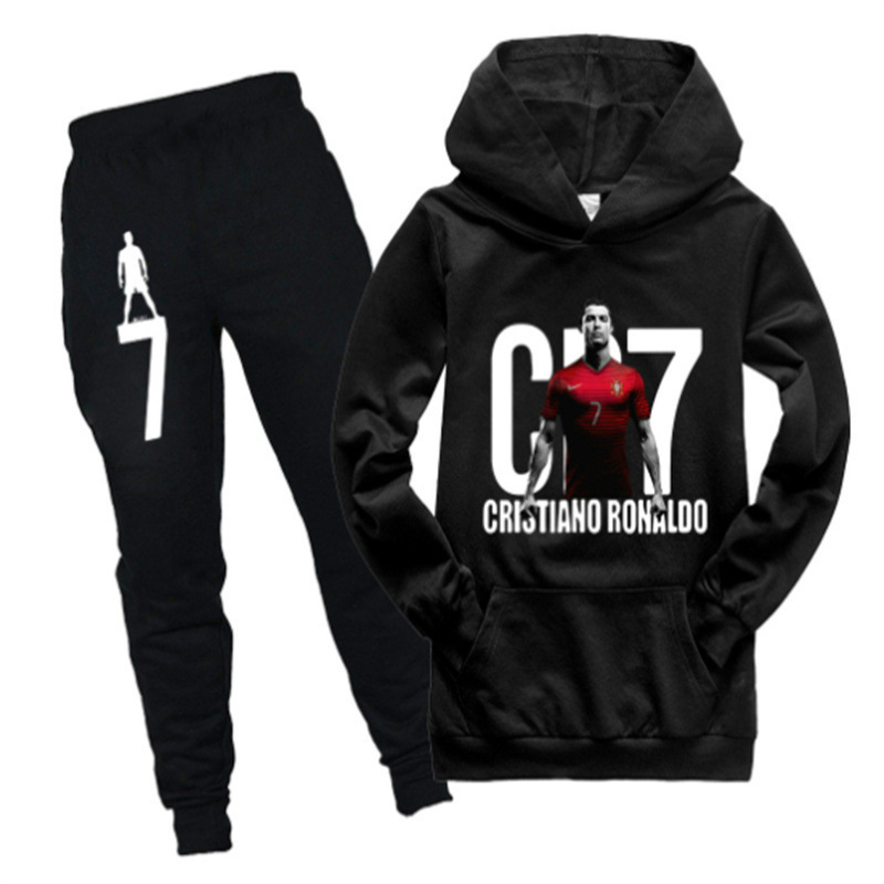 양털 국경 간 대외 무역 아동 의류 남성 및 여성 스포츠 정장 캐릭터 패턴 포켓 스웨트 셔츠 + 검은 색 긴 양복