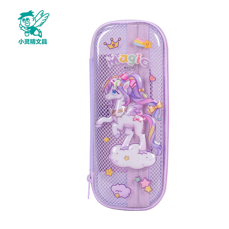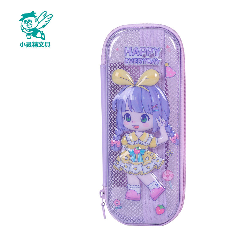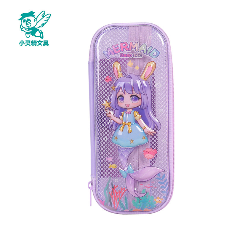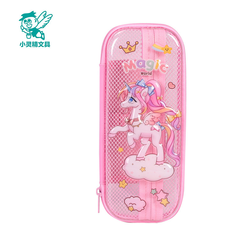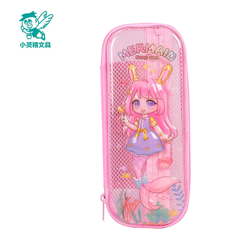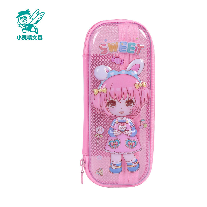 Xiaolingjing 어린이 연필 케이스 초등학교 연필 케이스 3D 소년과 소녀 문구 상자 소녀를위한 만화 투명 연필 케이스