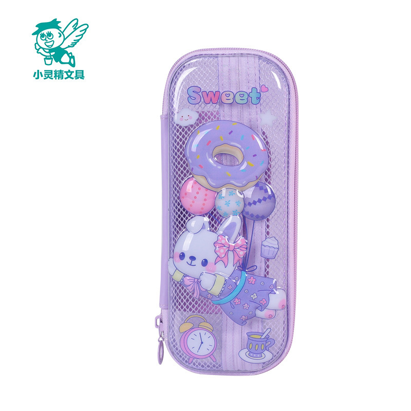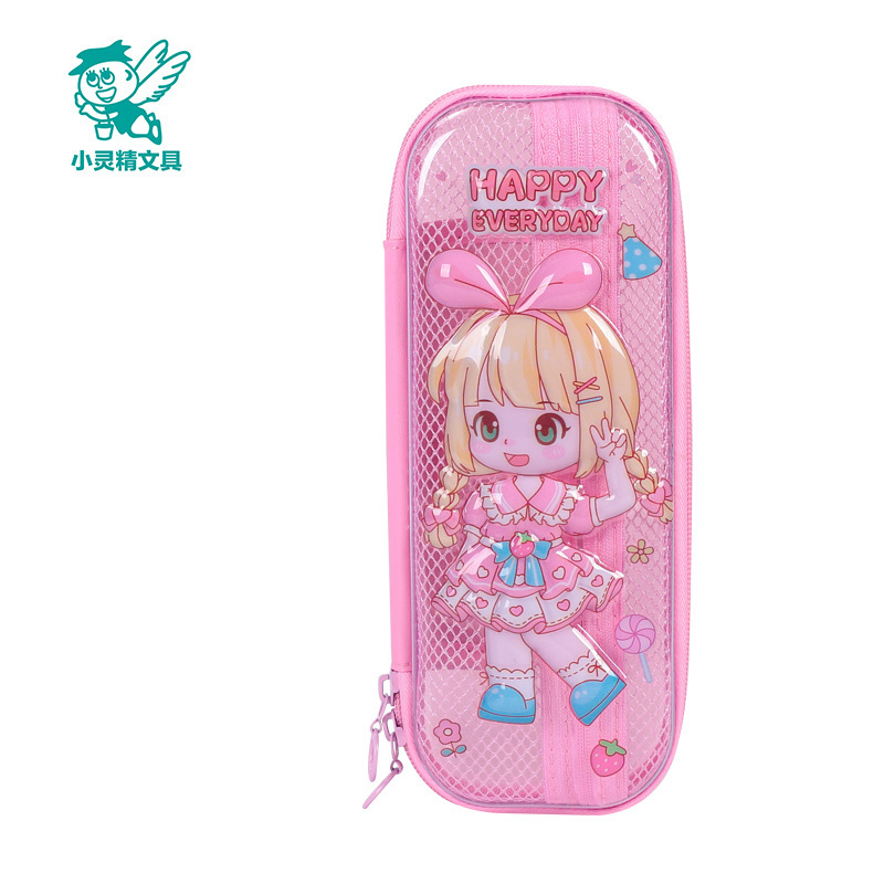 Xiaolingjing 어린이 연필 케이스 초등학교 연필 케이스 3D 소년과 소녀 문구 상자 소녀를위한 만화 투명 연필 케이스스토어 가기