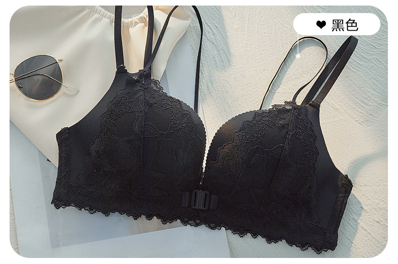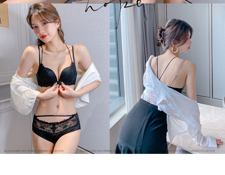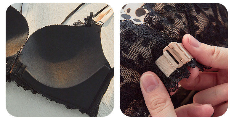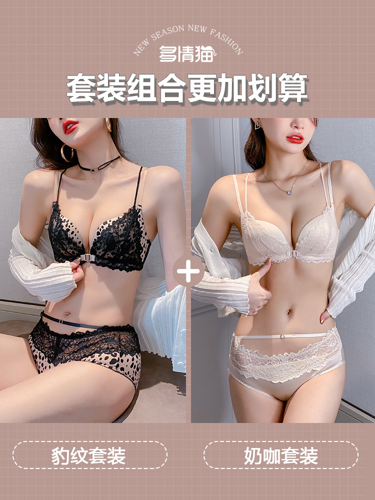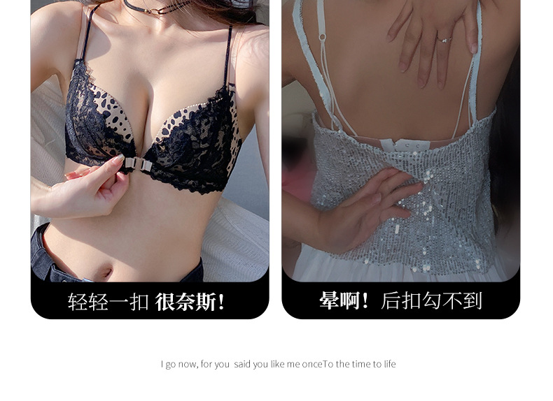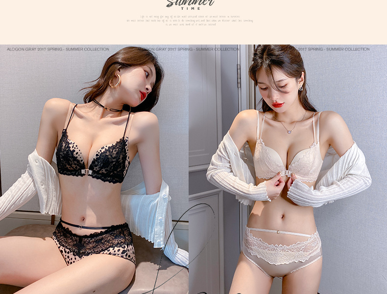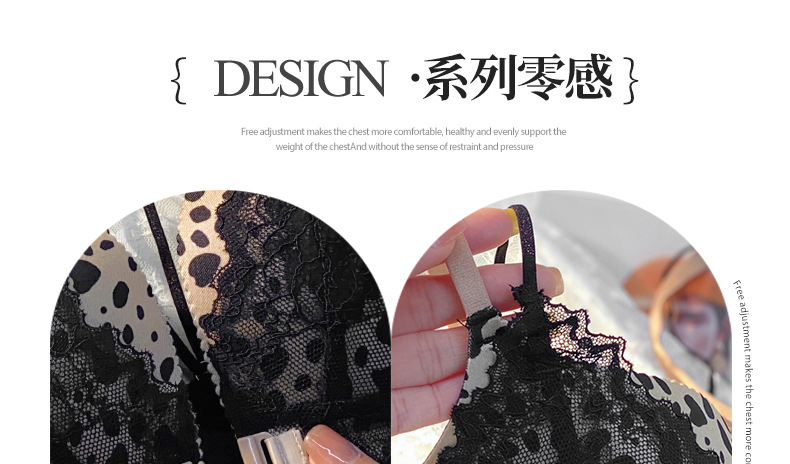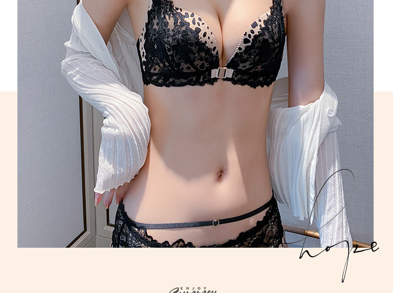 가슴이 작고 등이 아름다운 여성들을 위한 섹시한 금욕적인 고급 블랙 레오파드 프린트 속옷, 레이스 앞 버튼 브라 세트 Shantou스토어 가기