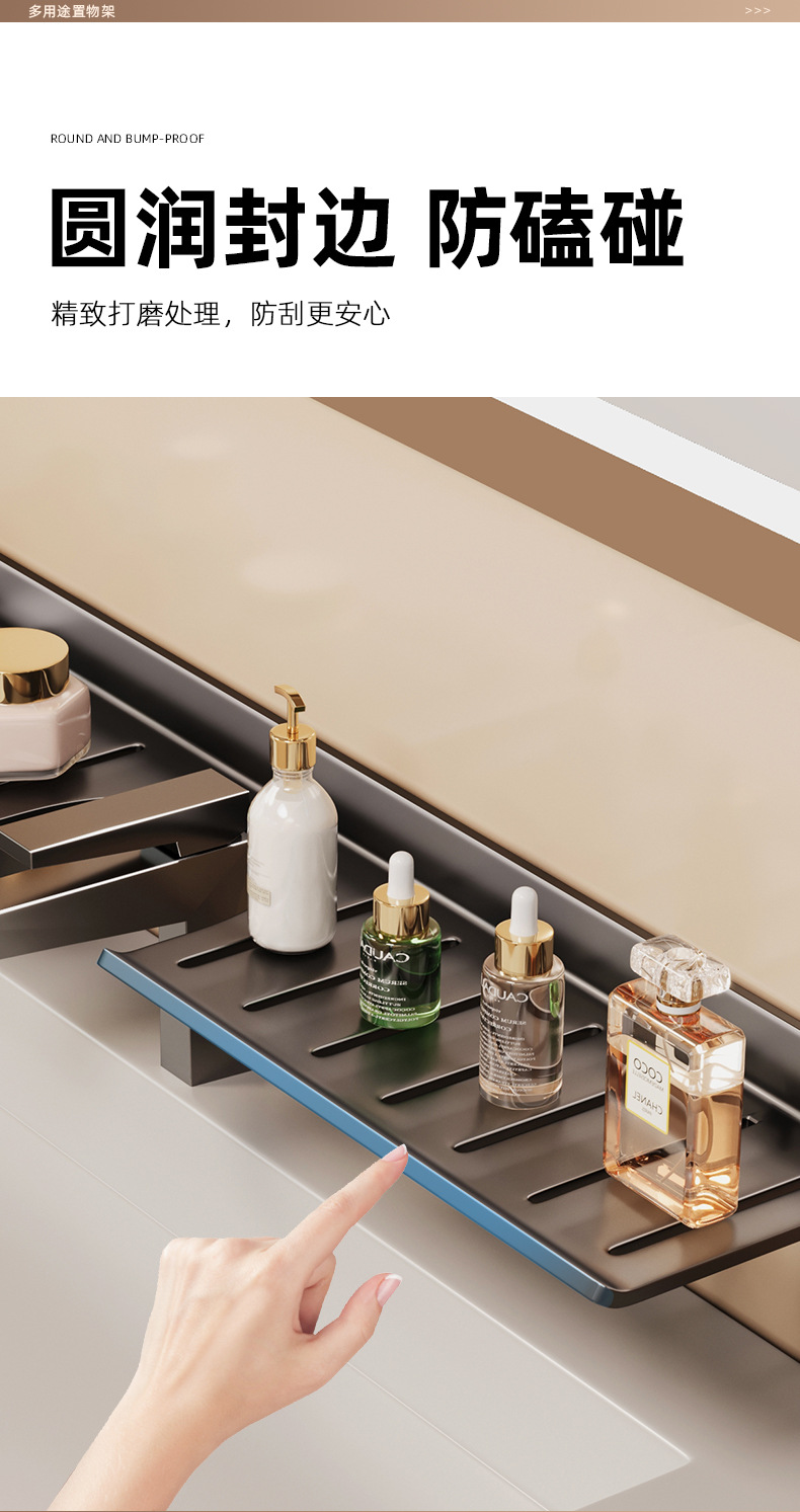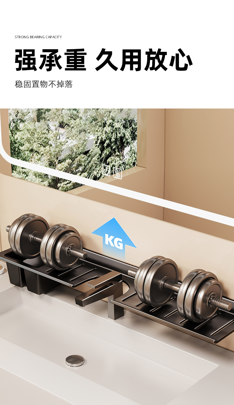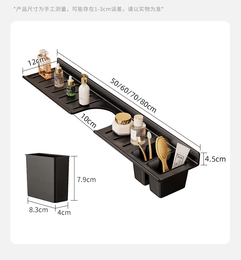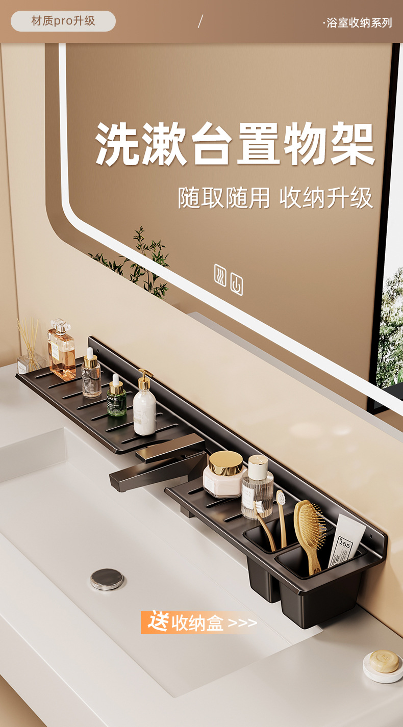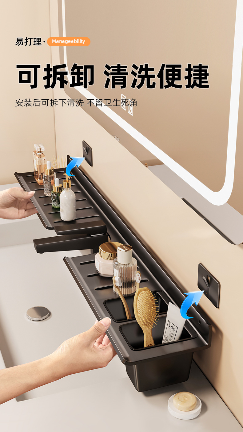 [맞춤형] 욕실 수도꼭지 뒤에 벽걸이형 펀치 없는 욕실 세면대 수납함