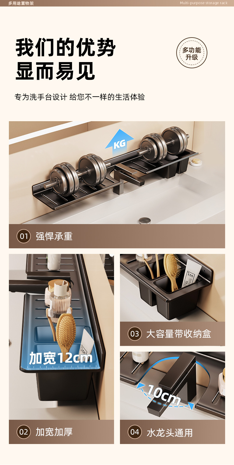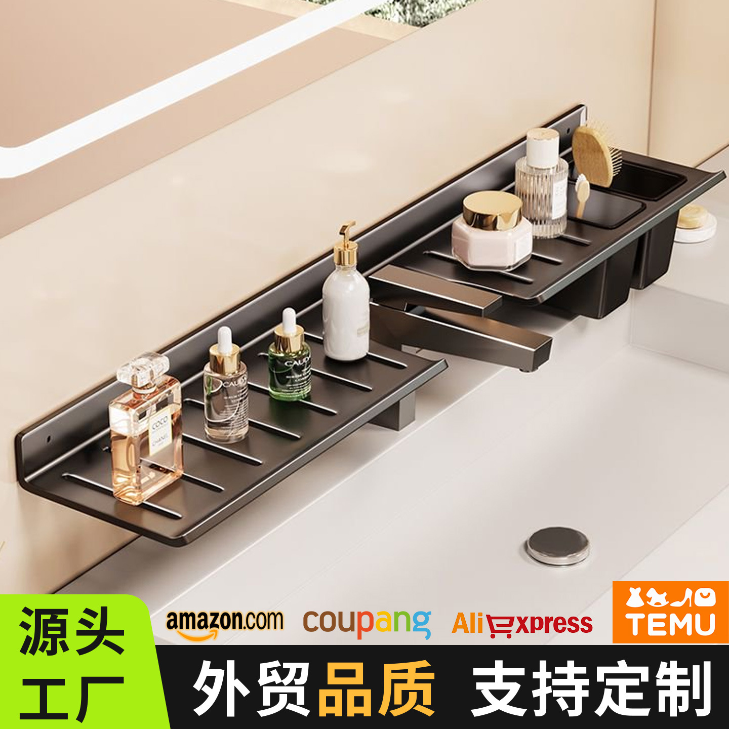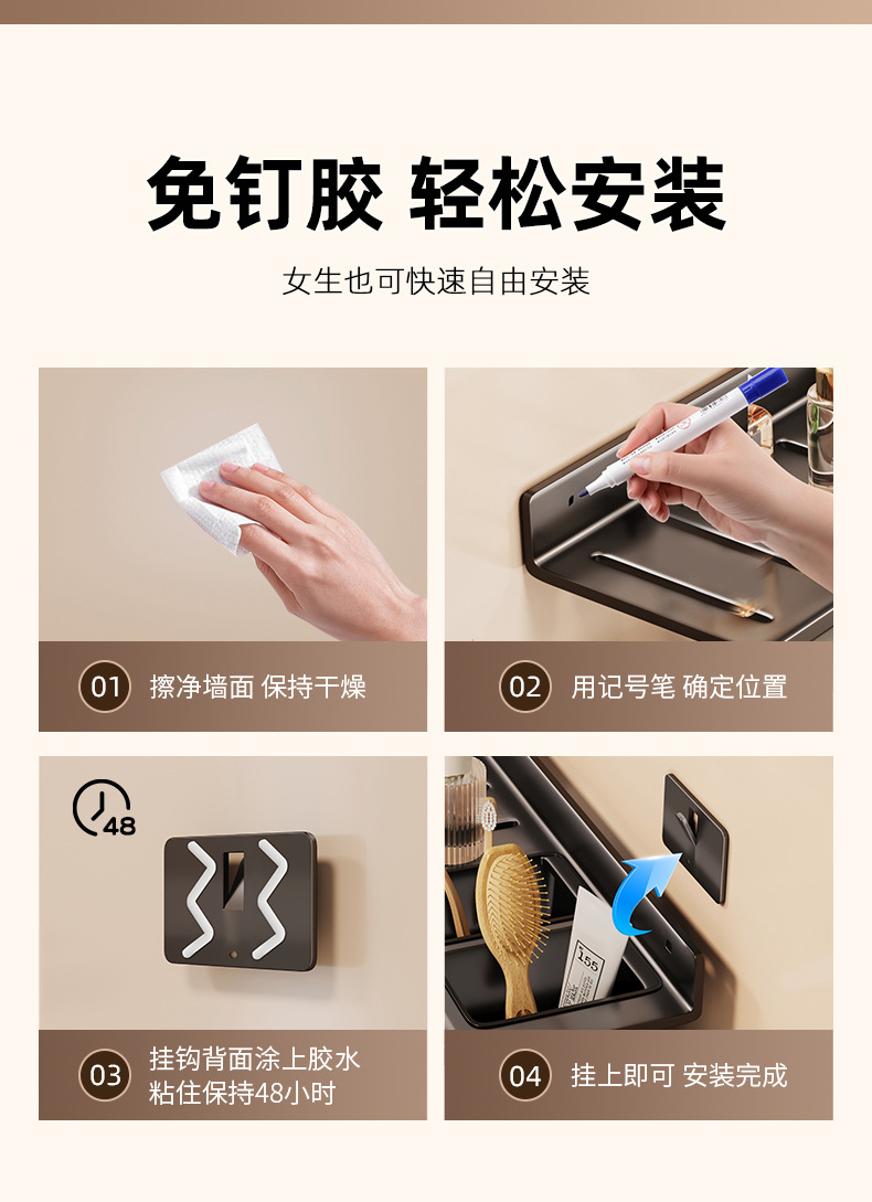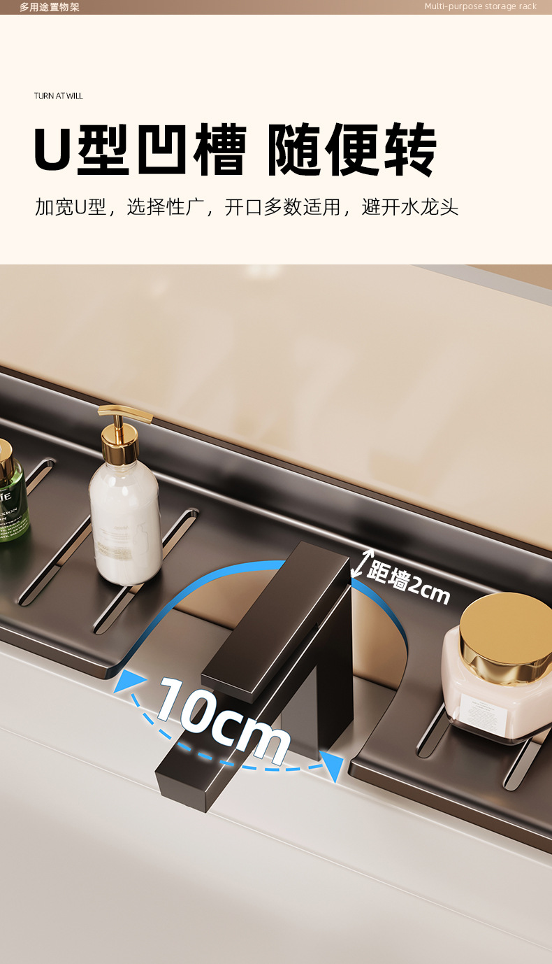[맞춤형] 욕실 수도꼭지 뒤에 벽걸이형 펀치 없는 욕실 세면대 수납함